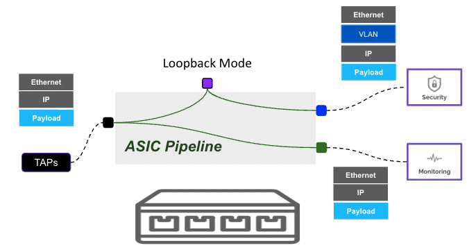 Loopback-mode means that a physical port can become network-port (ingress) and tool-port(egress) to which flow rules can be applied. A loopback-mode port is operated in loopback mode and avoids customers connecting a physical cable to make it operate in Loopback mode.
