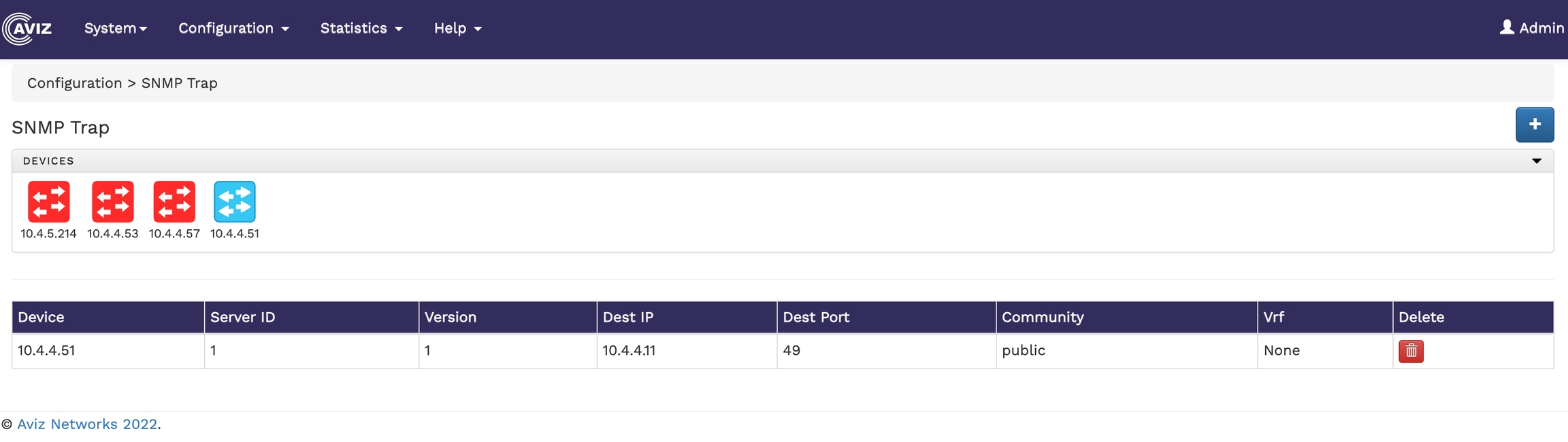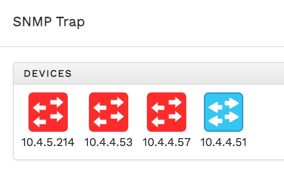 The following image shows the SNMP Trap page with the switches and configured SNMP Traps: