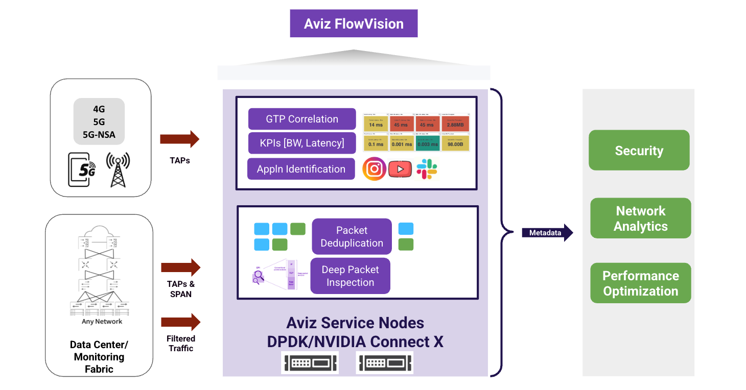 Aviz Service Node (ASN) is a high-performance, software-defined solution for network visibility, real-time packet processing, and metadata extraction across telecom, enterprise, data center, FTTH, campus, and edge networks. It efficiently identifies applications, extracts HTTP metadata, captures DNS information, and enables deep traffic analysis.