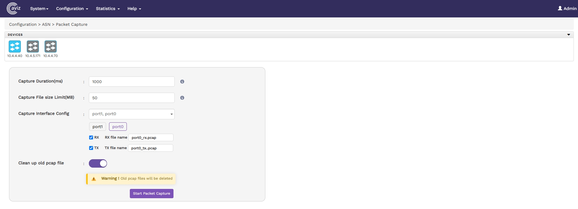 - Captured PCAP files are stored in the ASN server at - /var/log/and can be transferred using the Linux SCP command.
