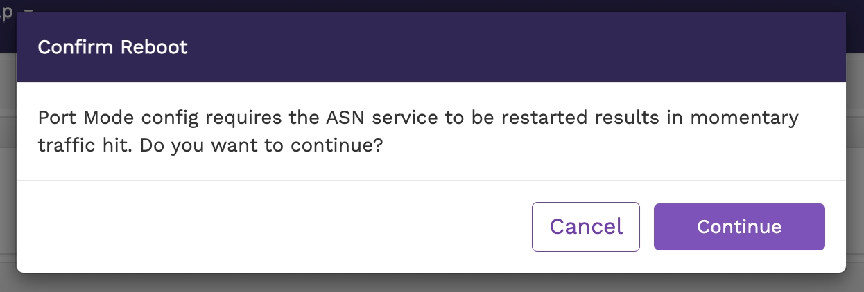 Once the port mode has been successfully changed, the ASN Core will automatically restart on the node to apply the updates