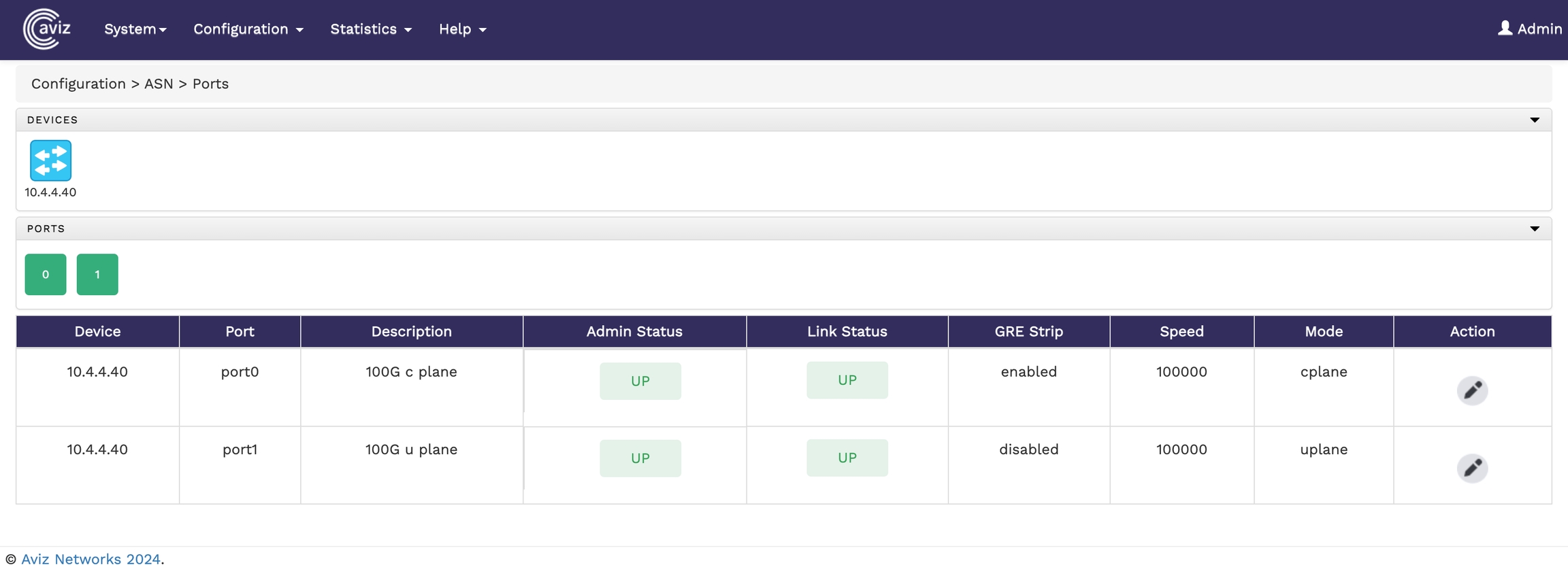 To configure ASN ports using the FlowVision GUI, navigate to: