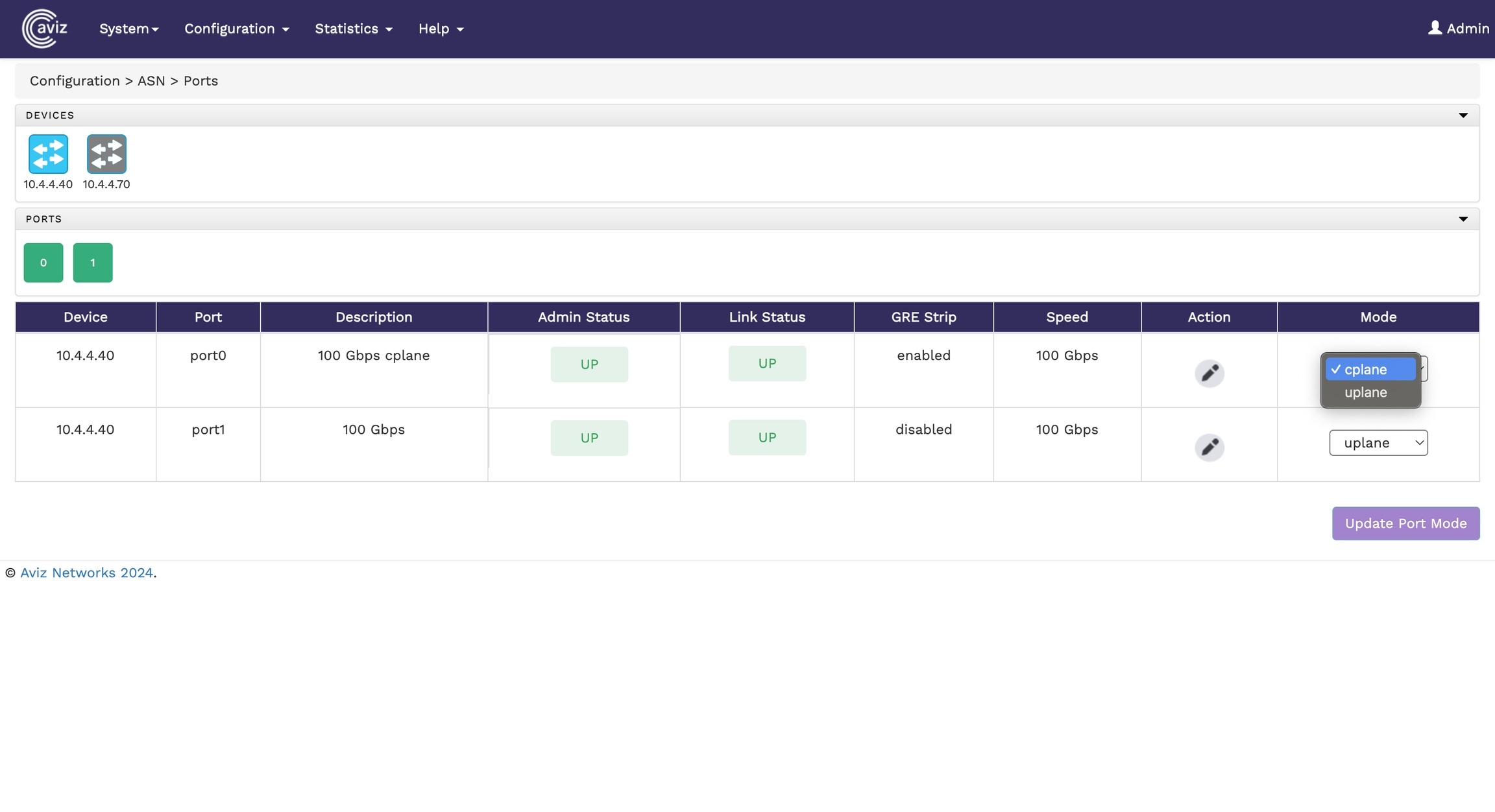 To update the mode of a ASN port in FlowVision, follow the steps below,