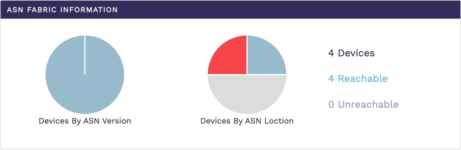 This pie chart shows you the device information based on the ASN Version and the ASN Location. You can hover the mouse pointer over the charts to display a tooltip with more relevant information.