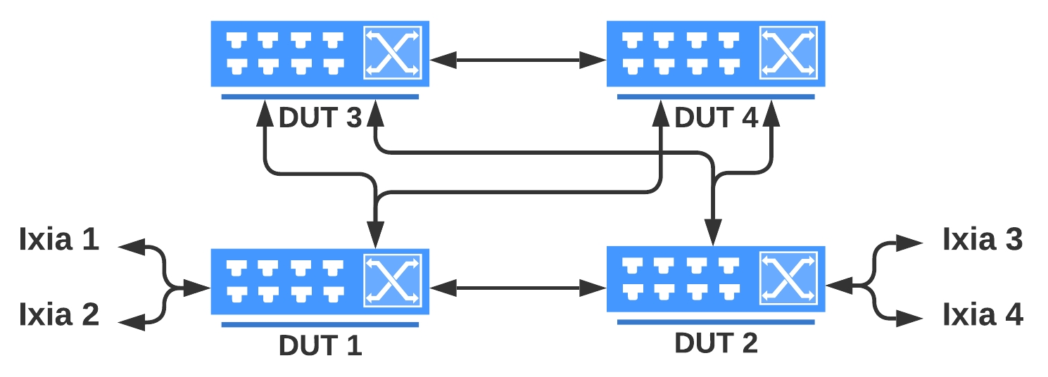 All test scripts except Chaos can be run with full mesh 4 DUTs topology
