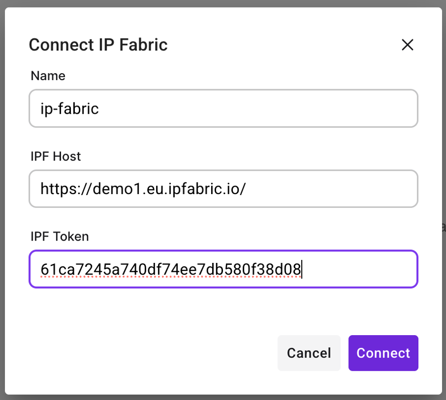 https://demo1.eu.ipfabric.io/)IPF Token – A valid API token with access to fetch snapshots and network data