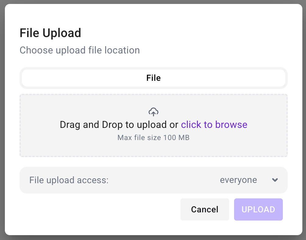 Set File upload access (e.g.,