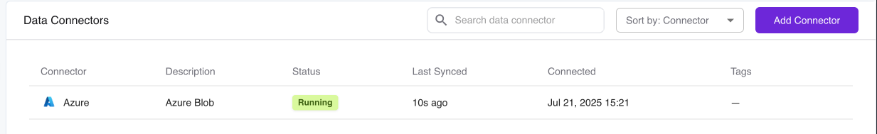 2. Navigate to **Settings → Data Connectors**, then click **Add Connector**<br>