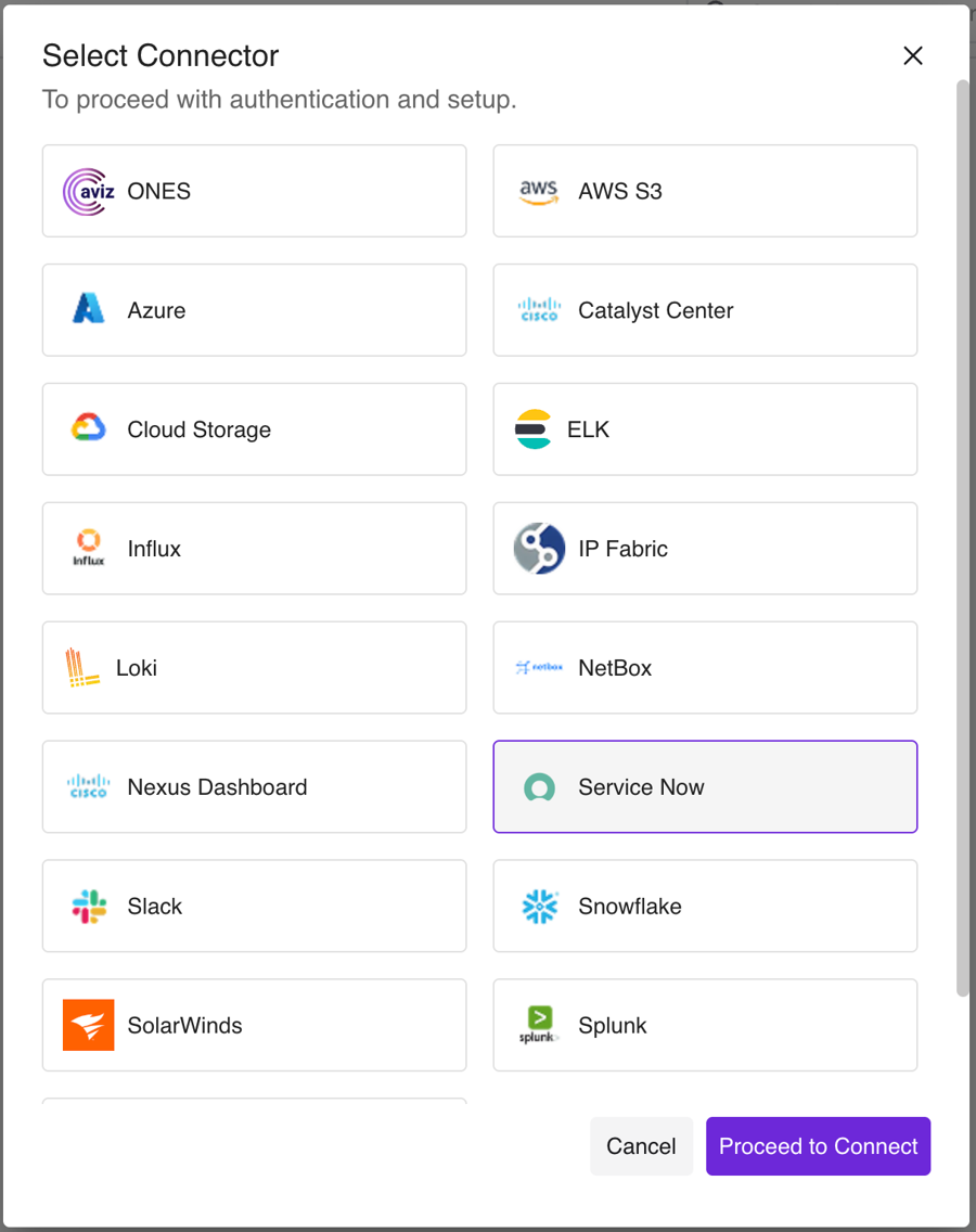 Select ServiceNow from the connector list