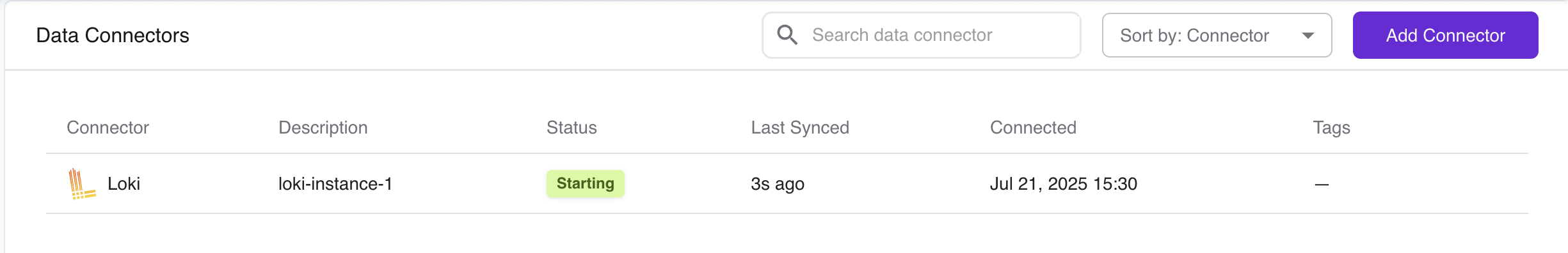 2. Navigate to **Settings → Data Connectors**, then click **Add Connector**<br>