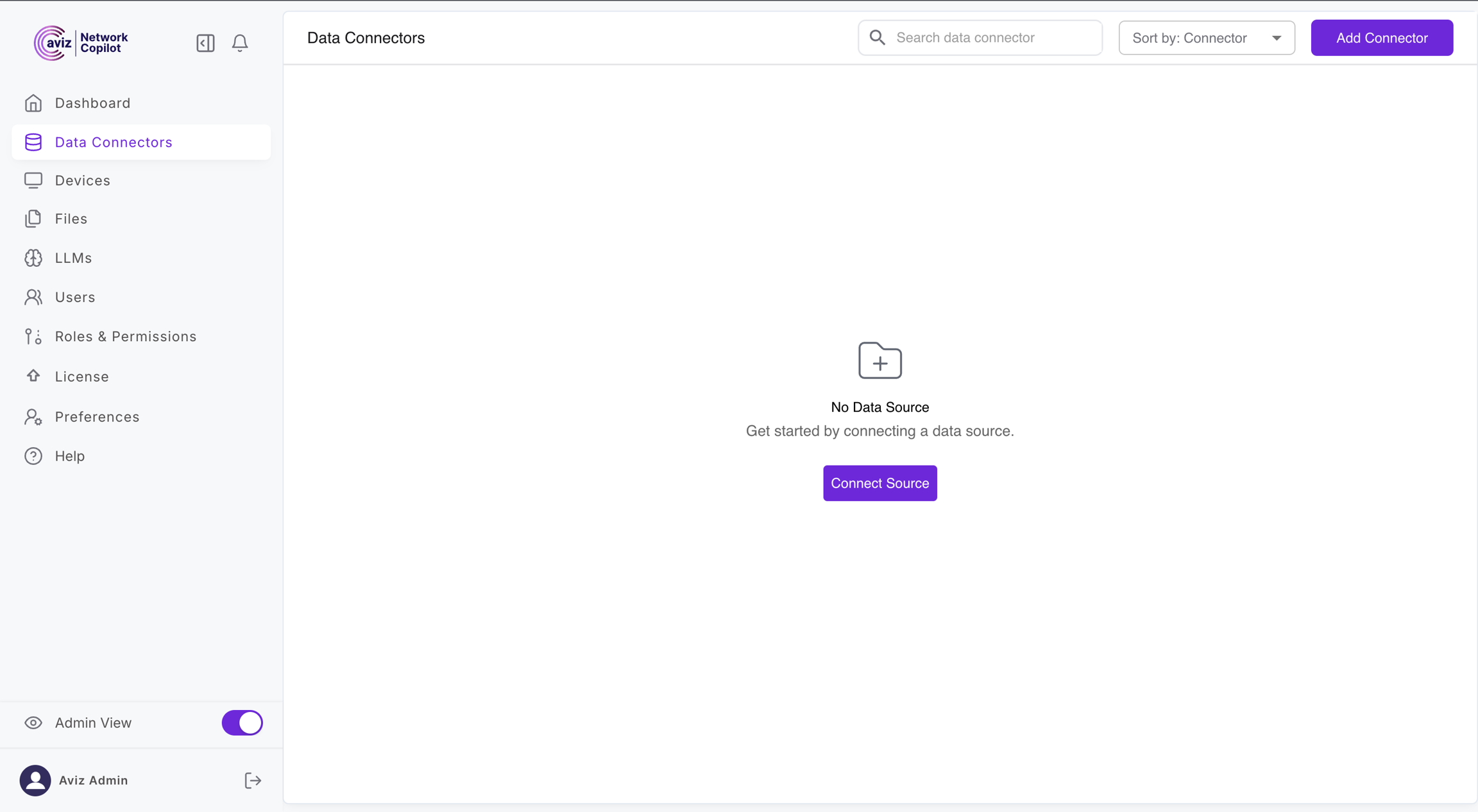Navigate to Admin View → Data Connectors, then click Add Connector