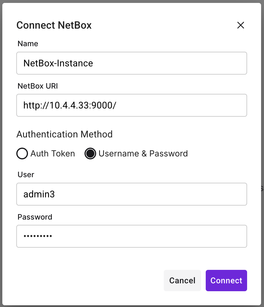 https://netbox.example.com/)Authentication Method: Choose