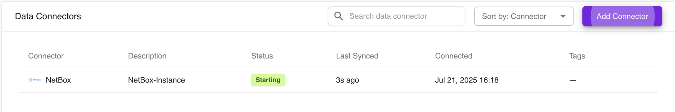 Select NetBox from the list of available connectors