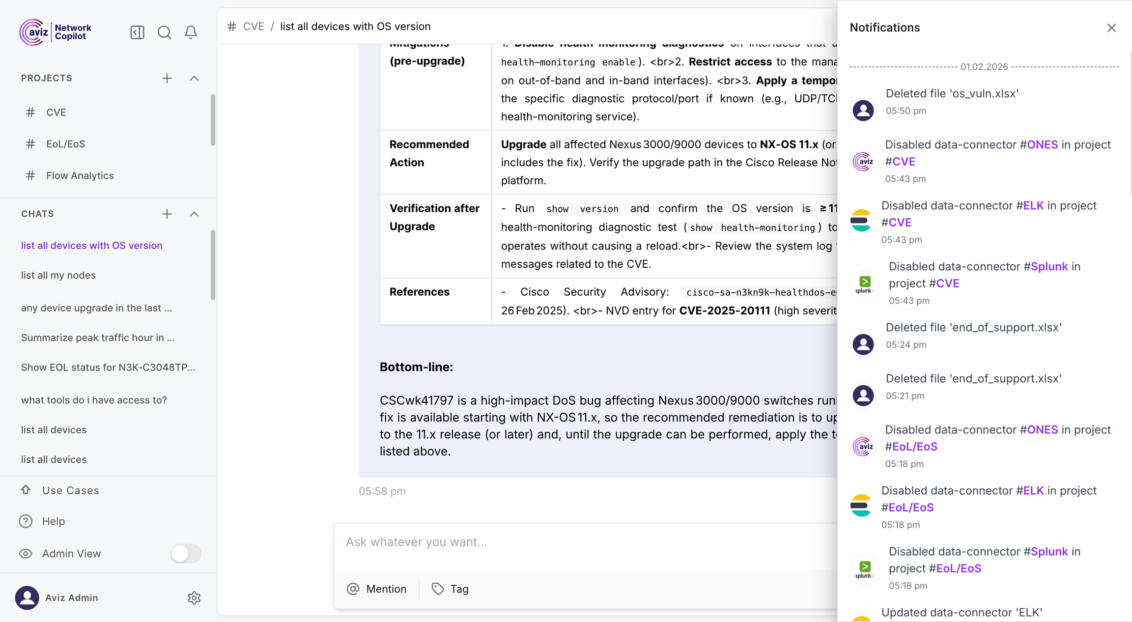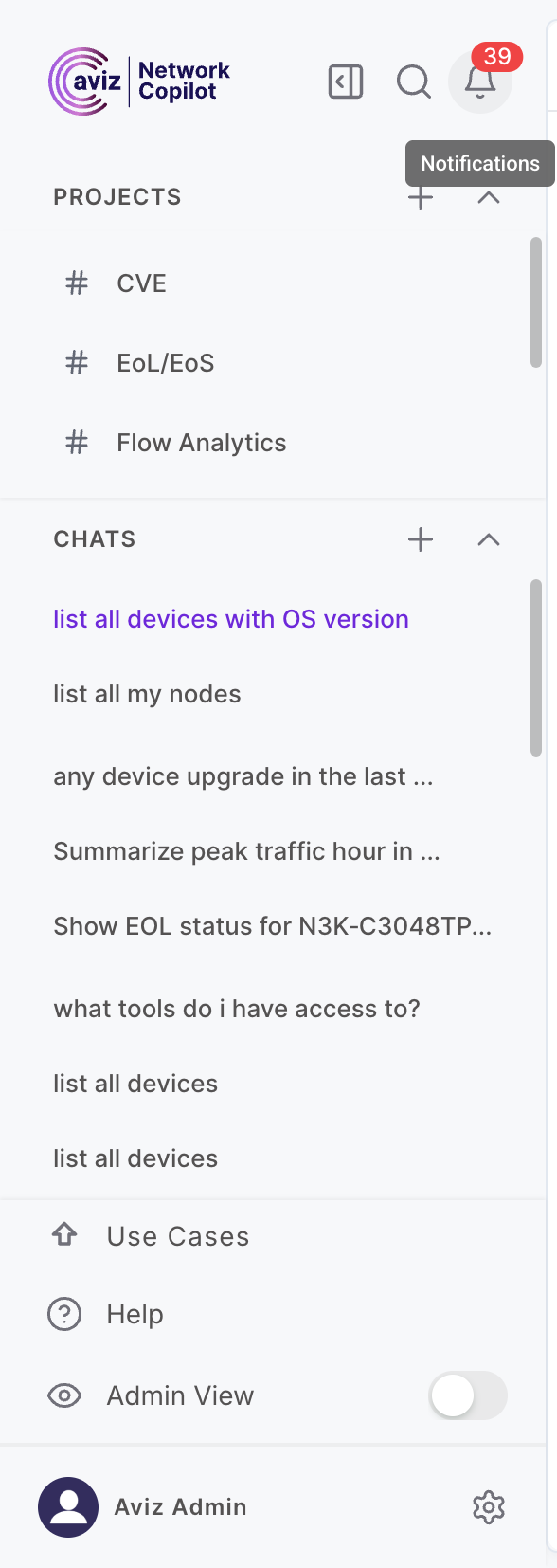 Notifications in Network Copilot
