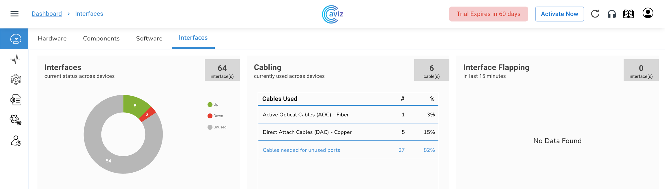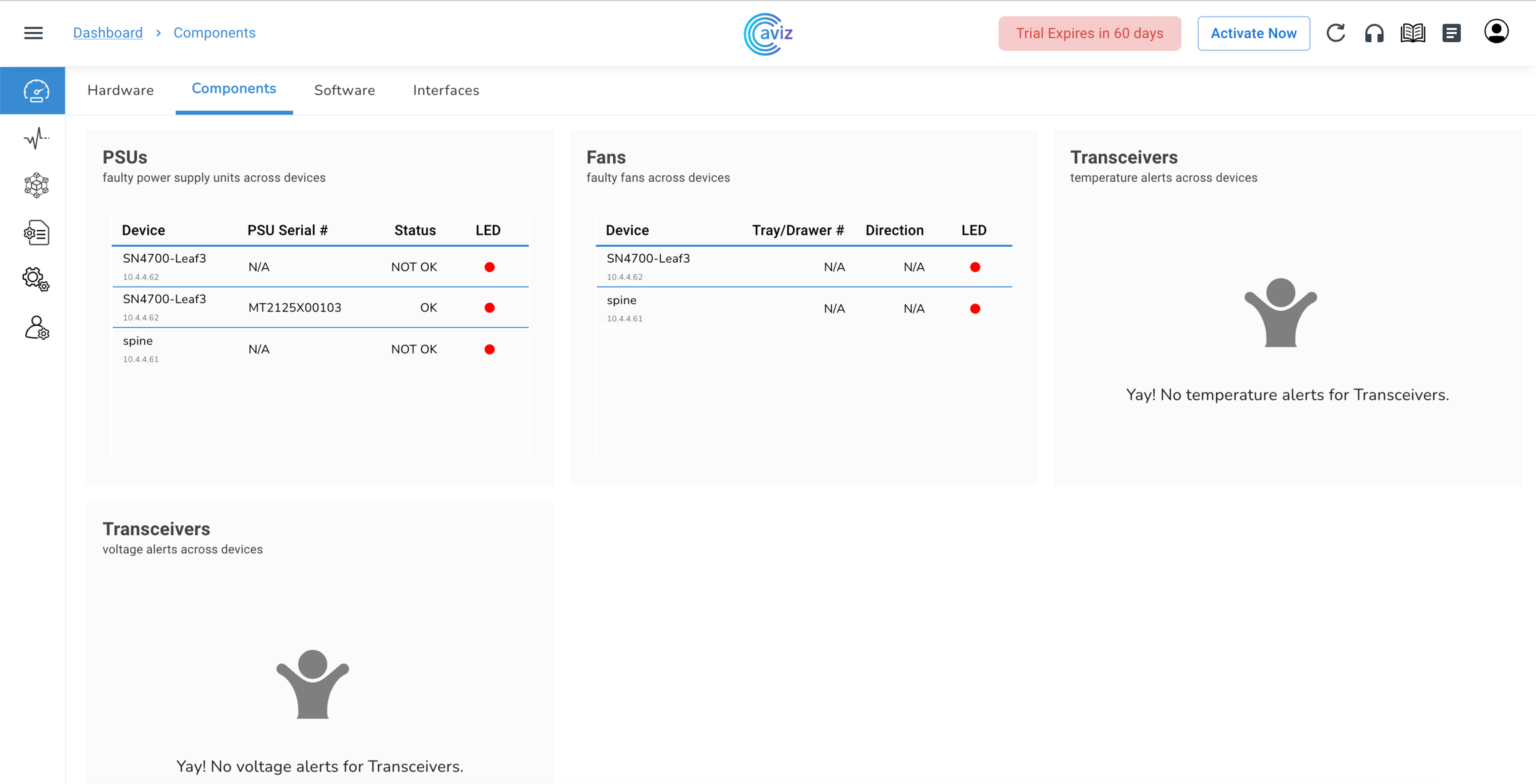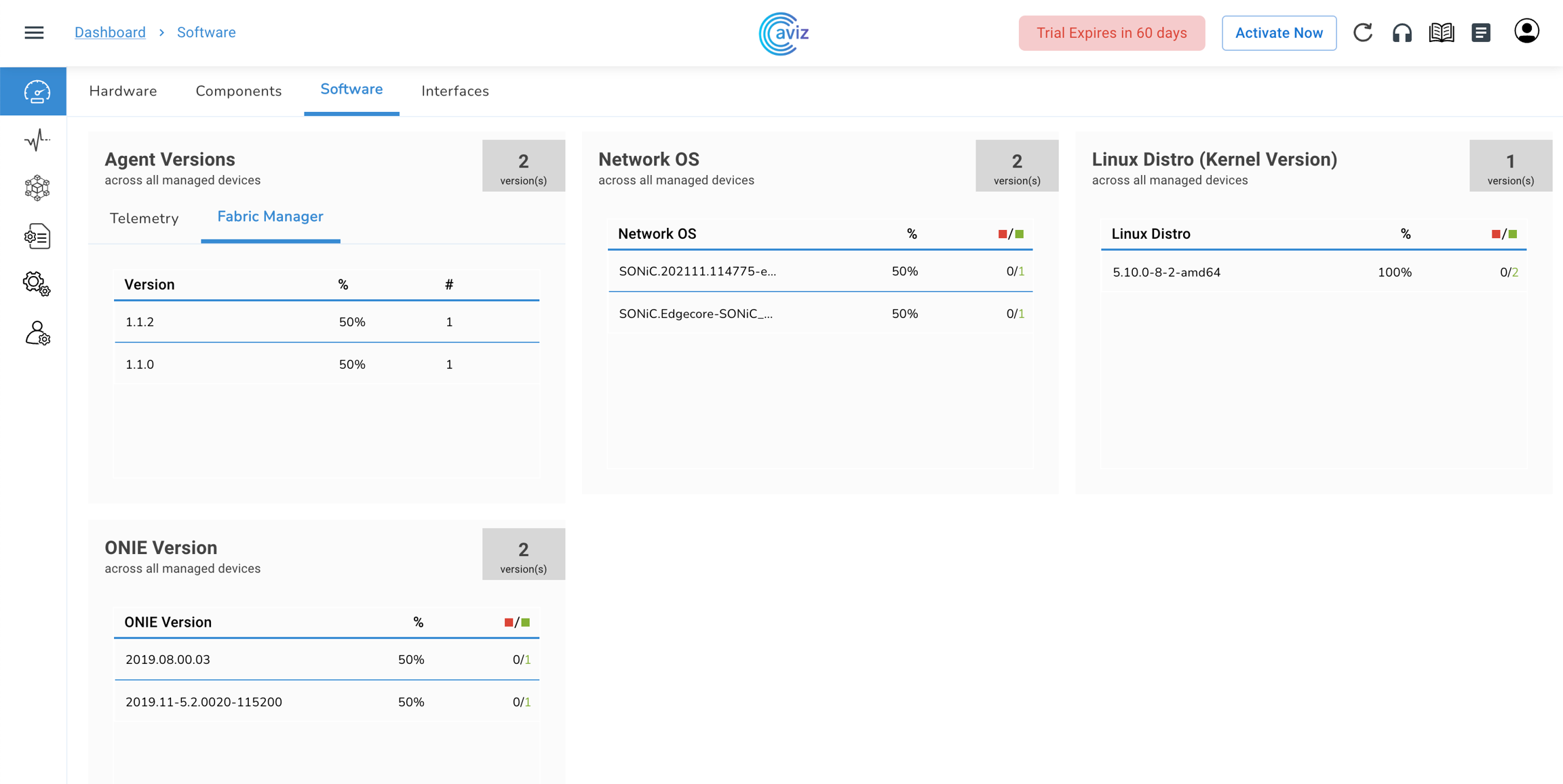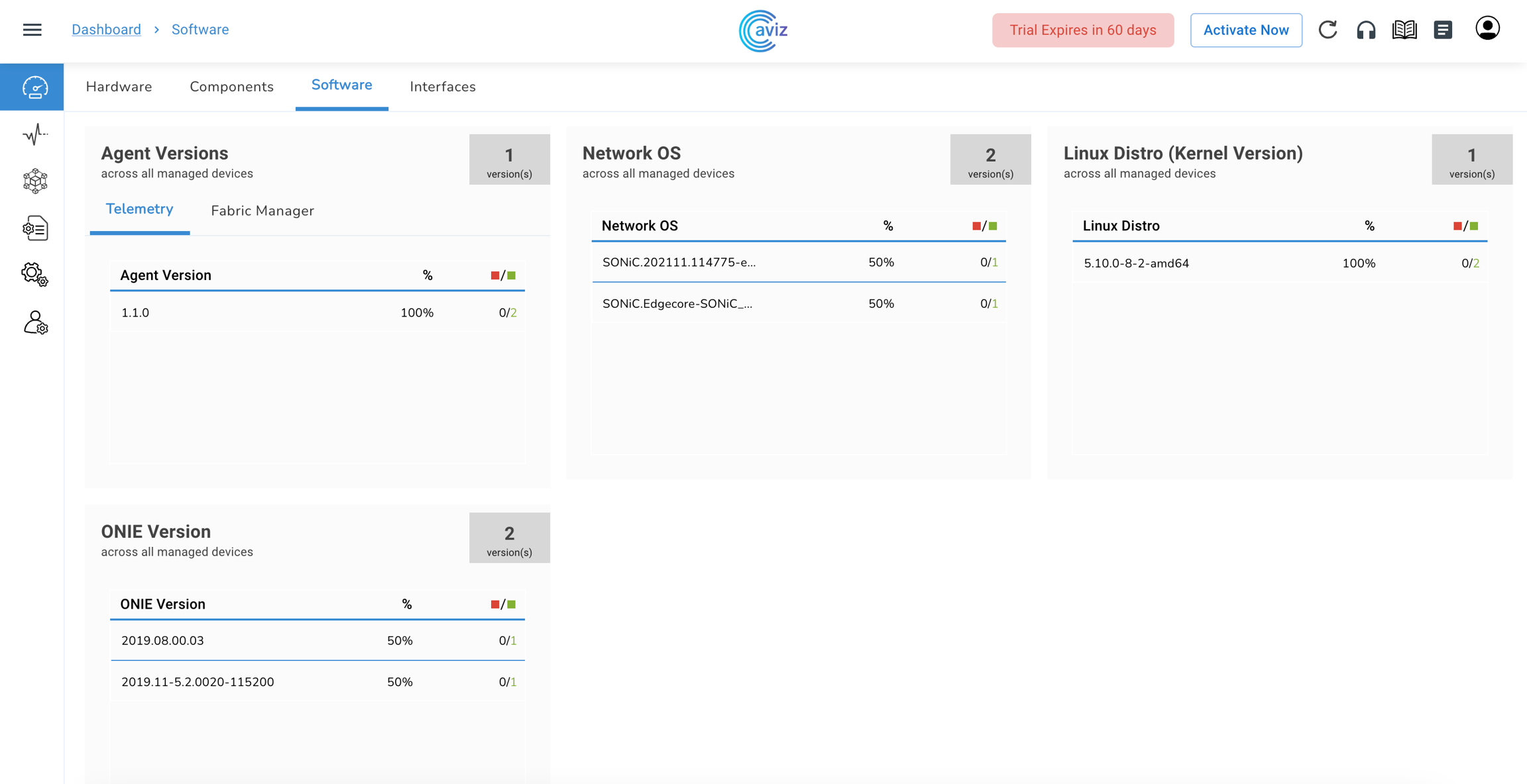 The dashboard provides the NetOps with an overview of the data centre. It contains the entire hardware inventory of the network and shows the status whether these switches are streaming or not streaming.