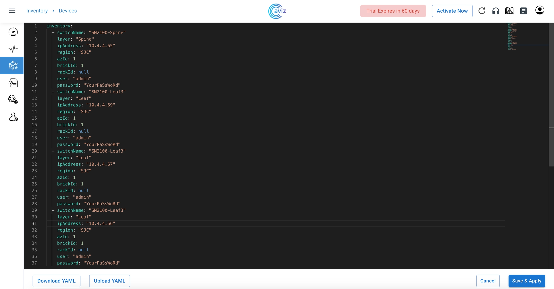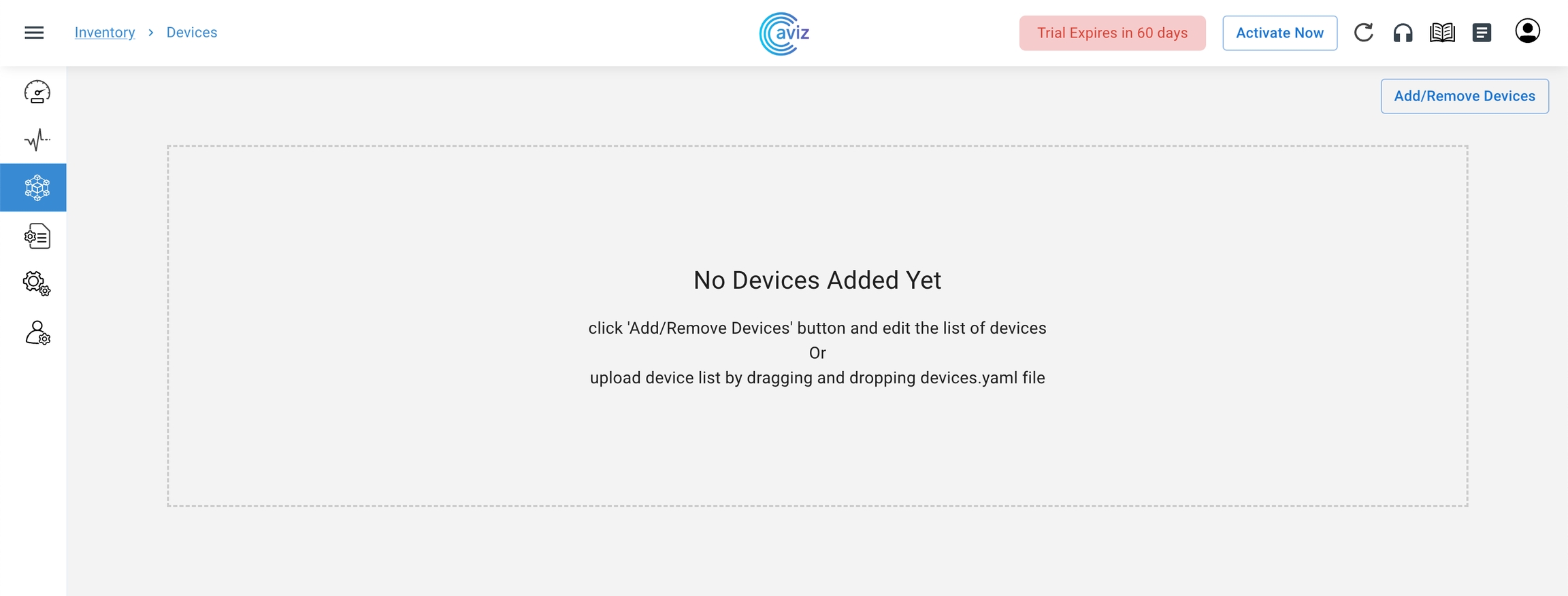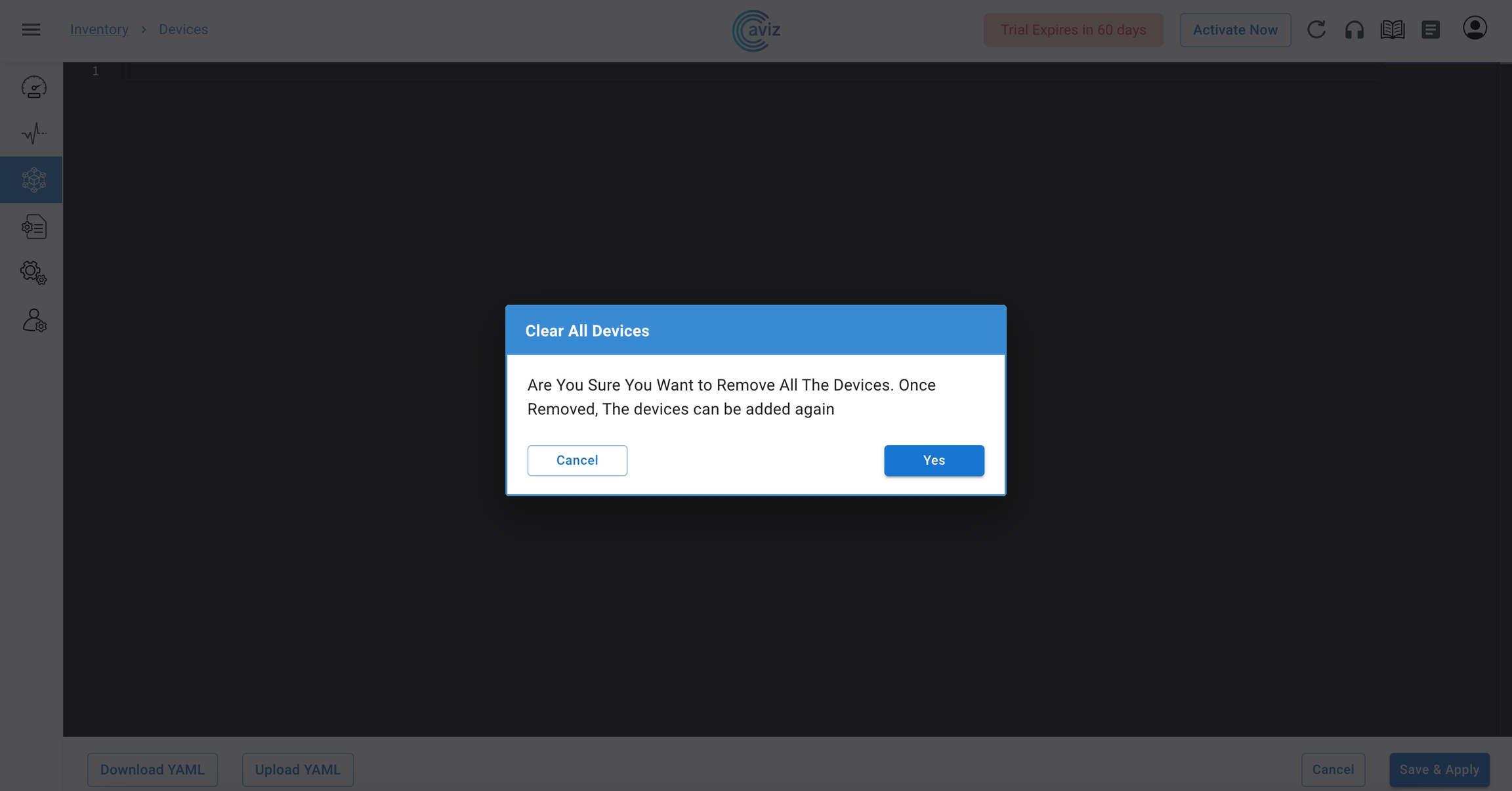Add/Remove devices from the dashboard: You can onboard the devices using the YAML file upload or via in-built editor in the UI