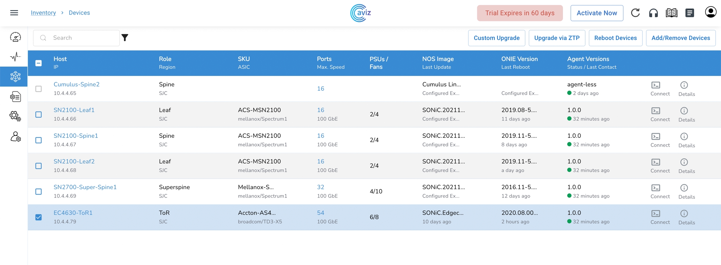 SKU / ASIC: Shows the device hardware SKU and ASIC vendor
