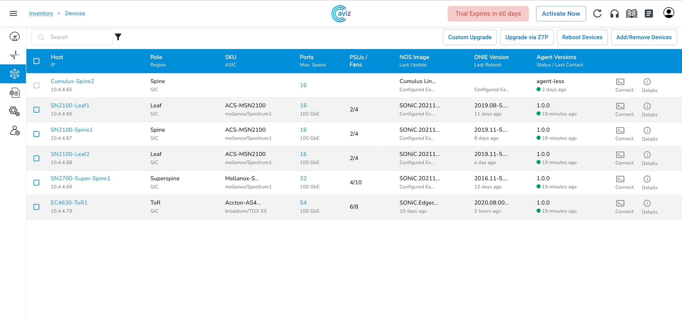 Agent Version / Network OS: Shows the agent version running on the device and the current active OS version on the device