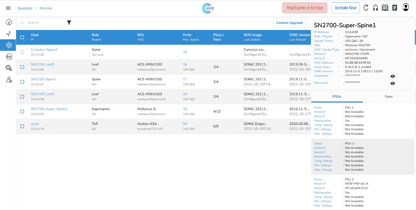 PSUs / Fans: Shows the total number of Power supplies and Fans present on a particular device