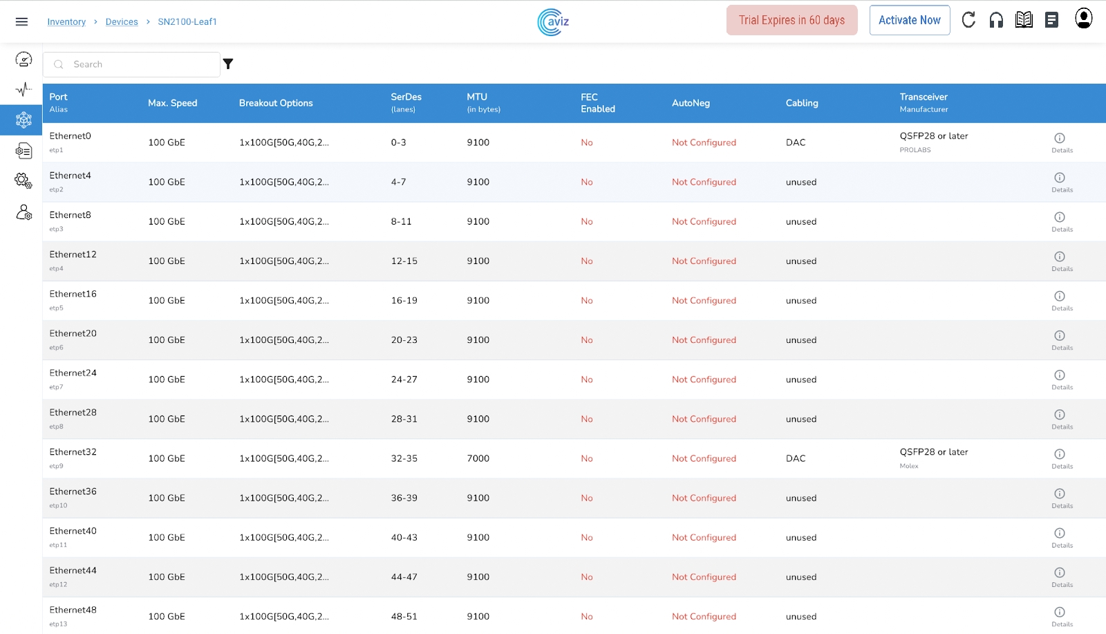 Click on the number of ports to get a detailed view of all the ports on a particular device