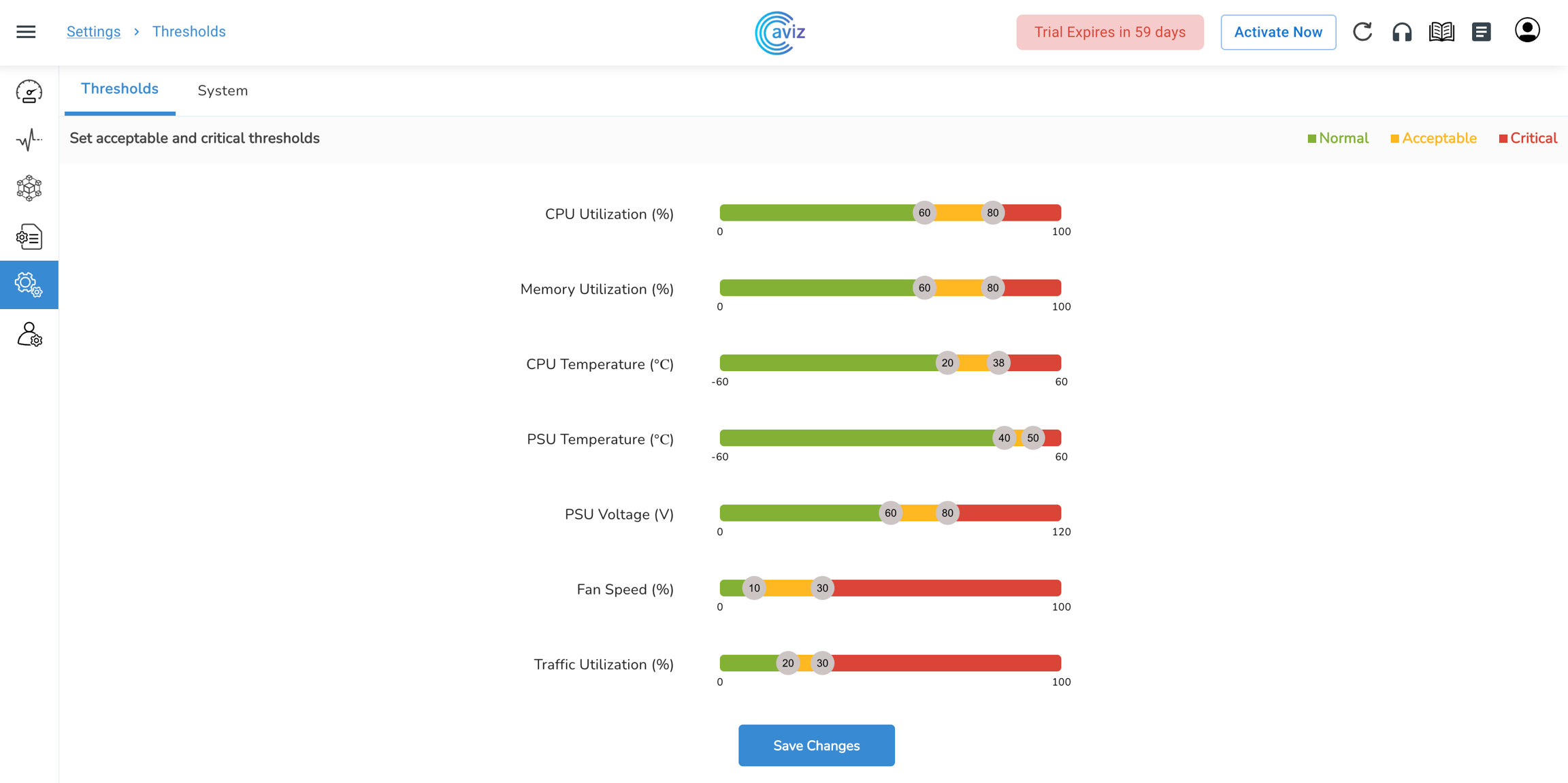 Navigate to Settings >> Thresholds