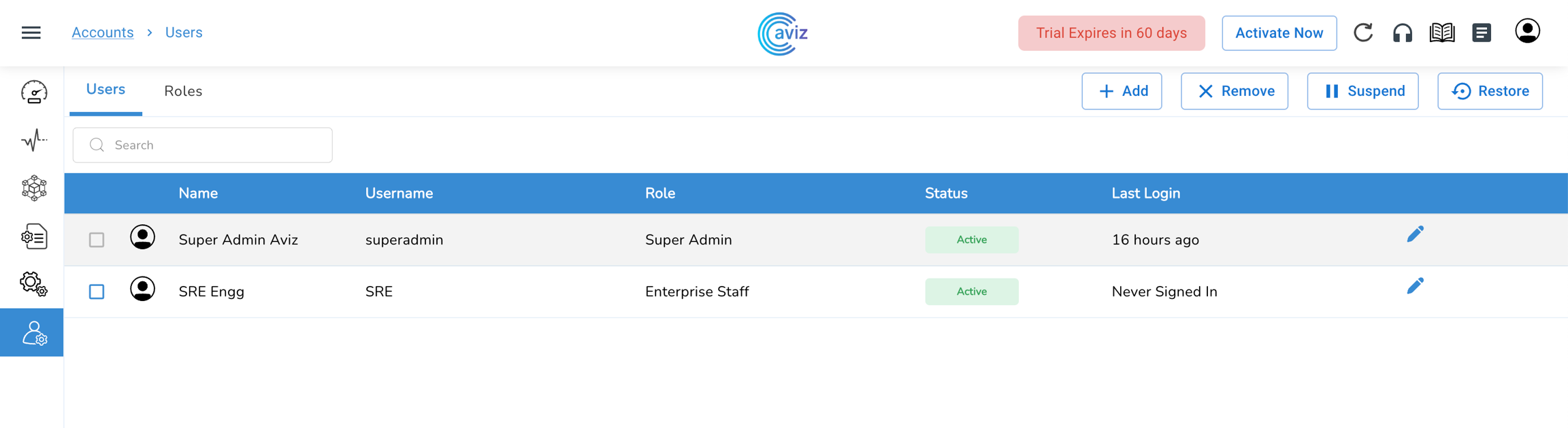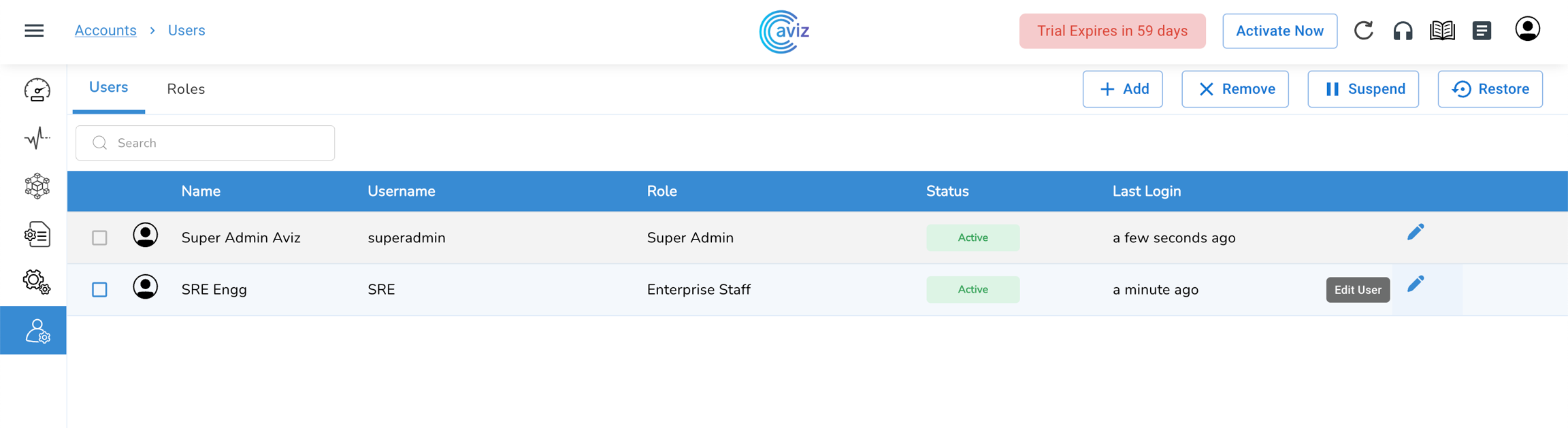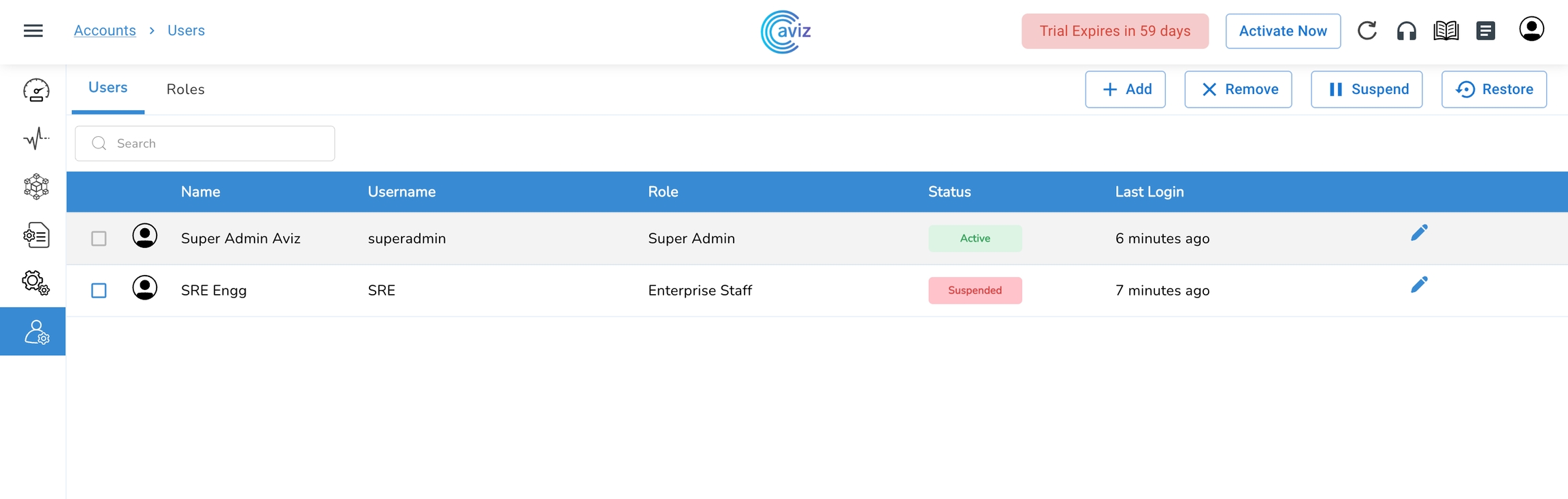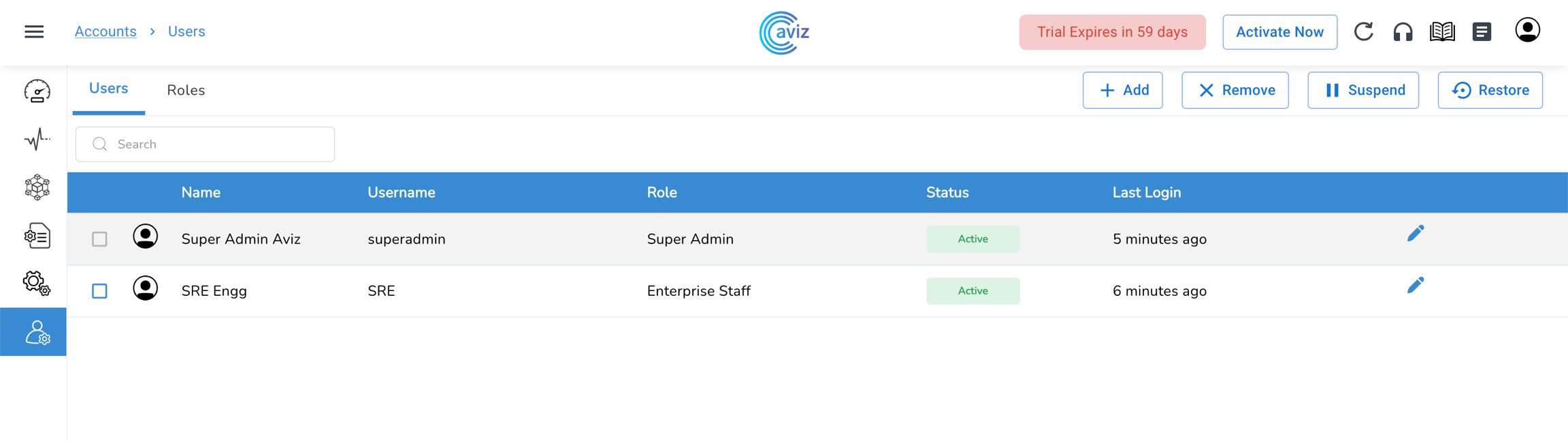 In this view, we get the User status and Role given to it and the Last login time by the user.