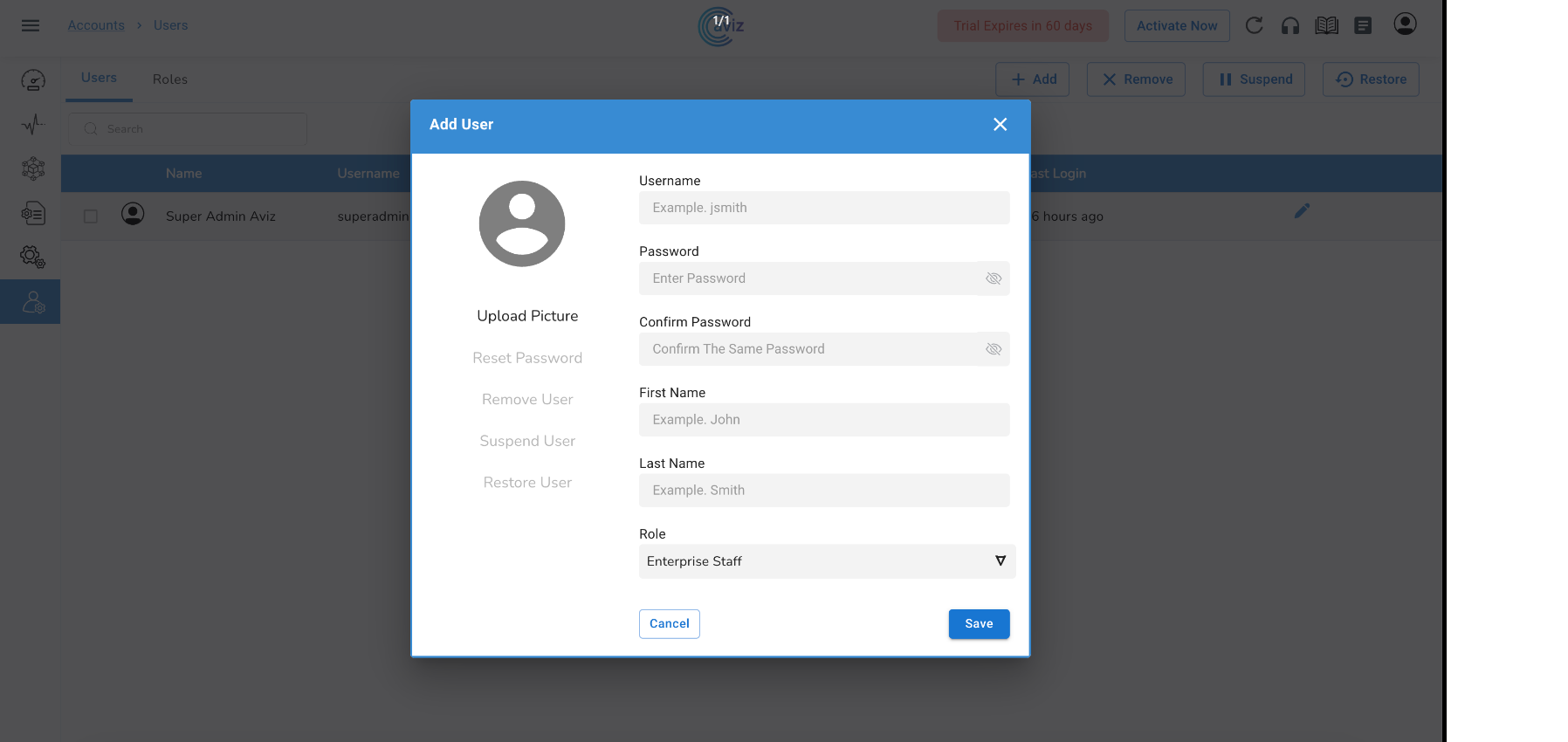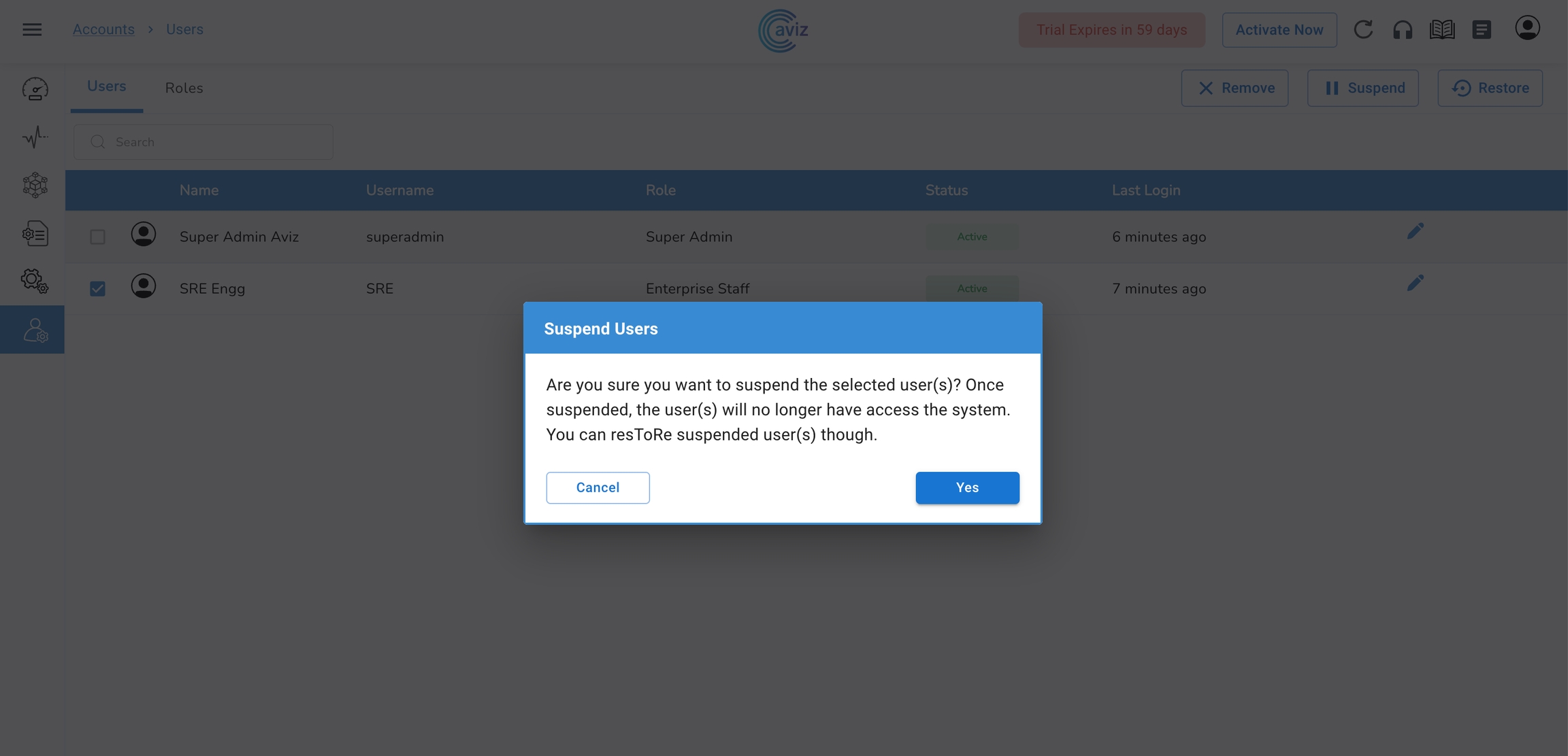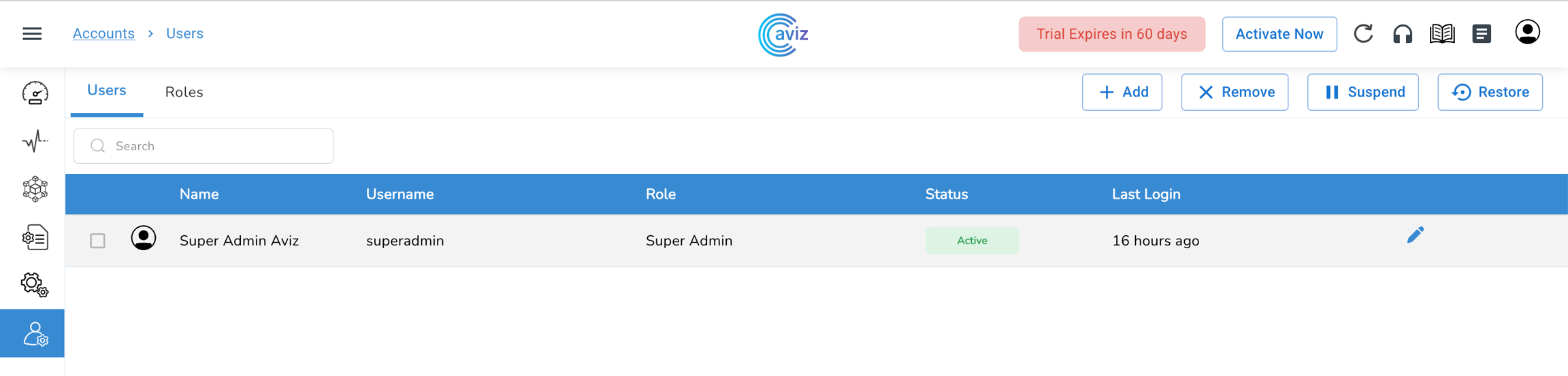 On this User tab, we can Add new users and can remove or suspend any existing users