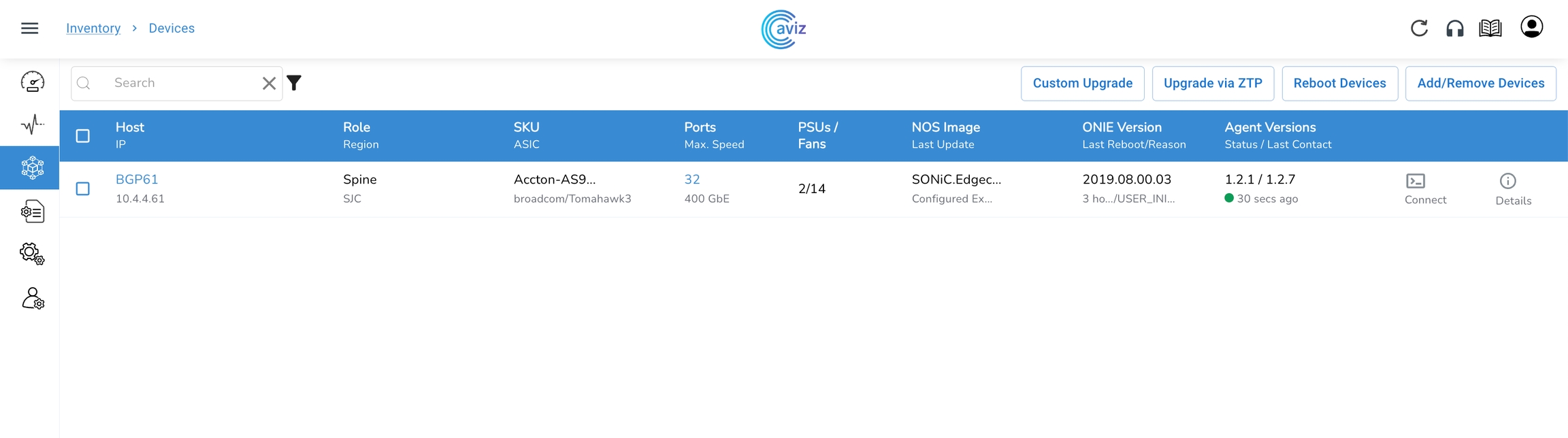 Once the device comes up with the new image, the ONES application will install Telemetry and Fabric manager agent