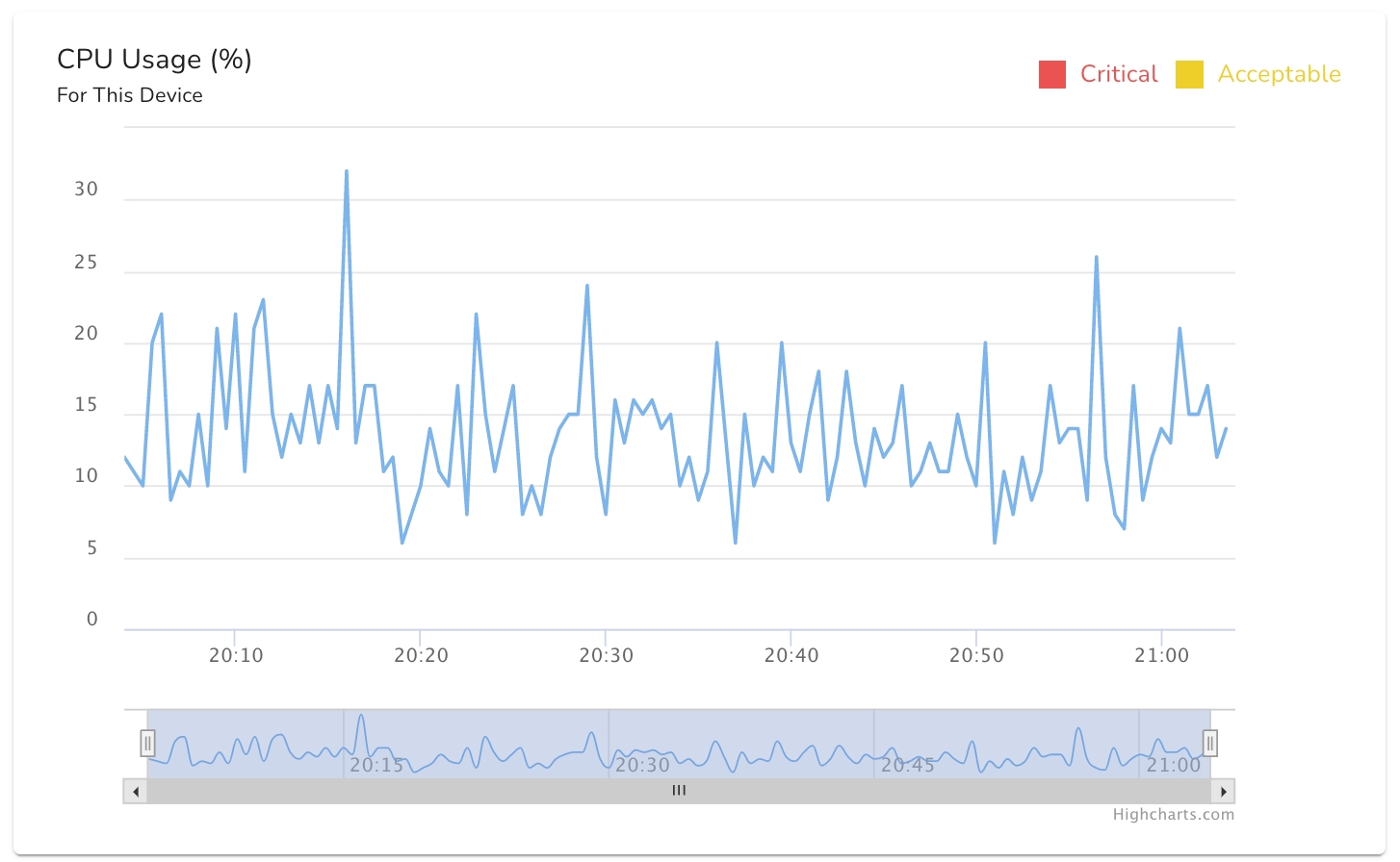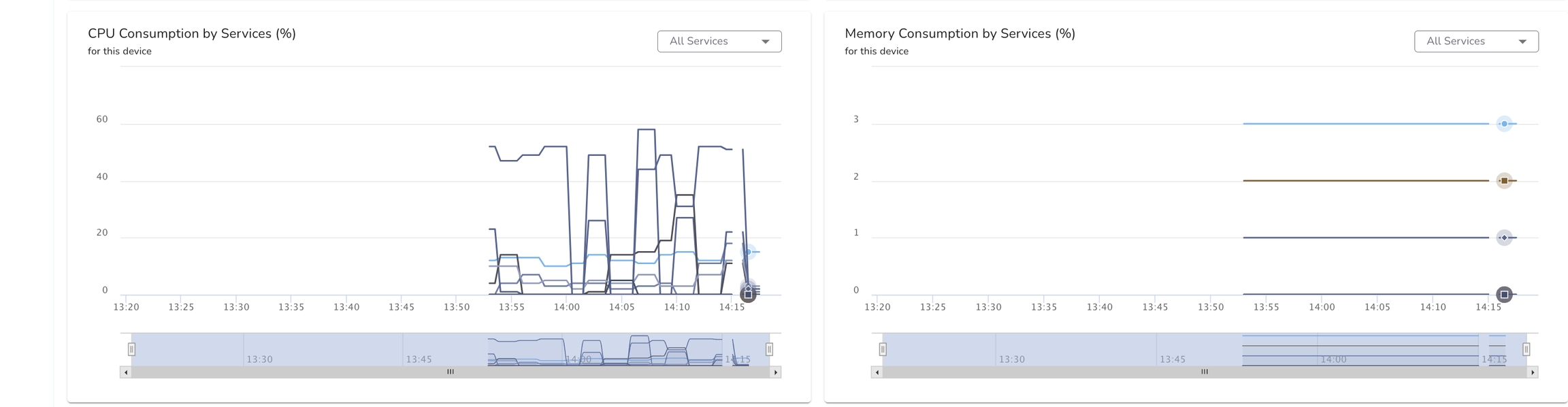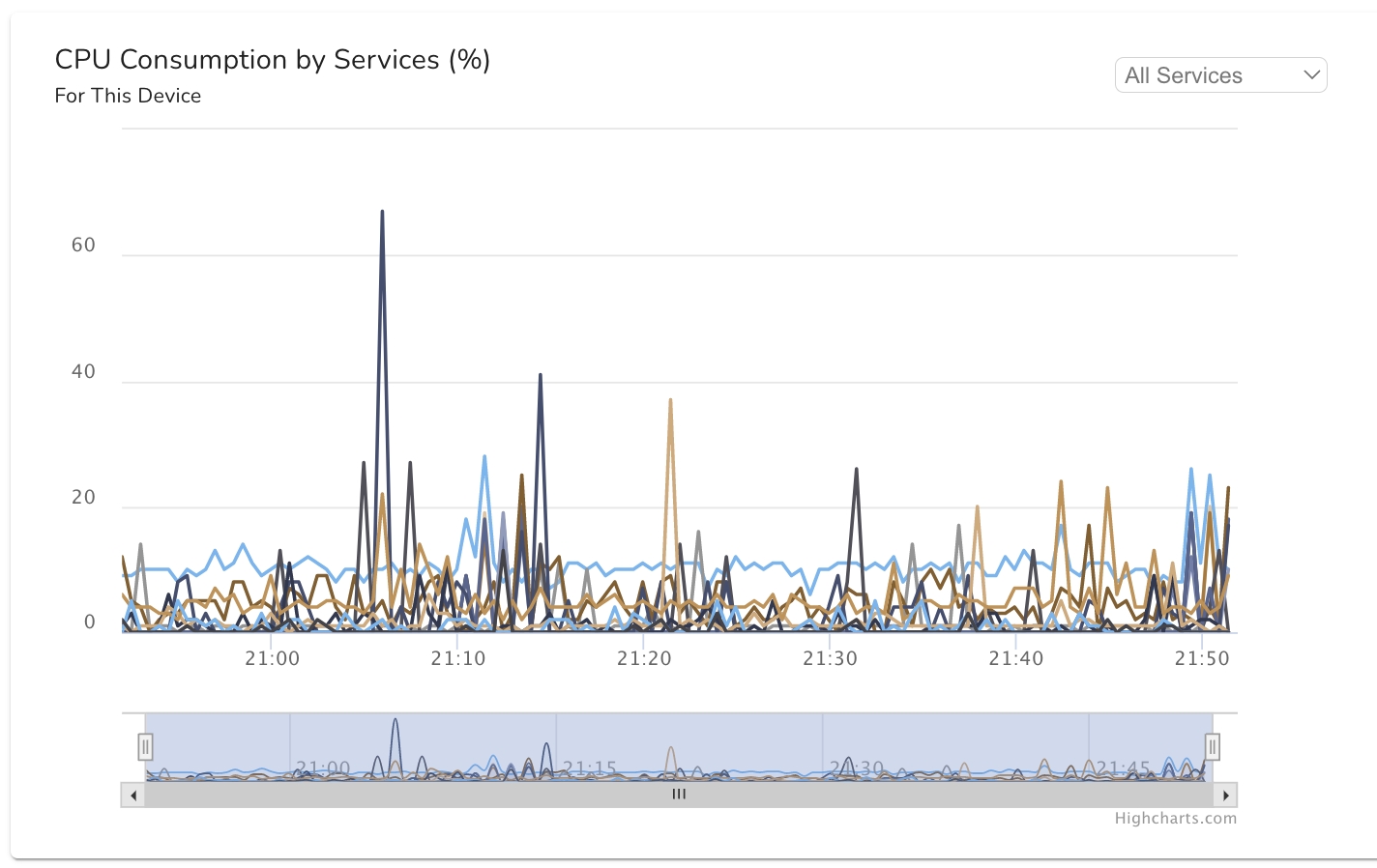 This widget shows us the CPU consumption percentage level of all services / per service.