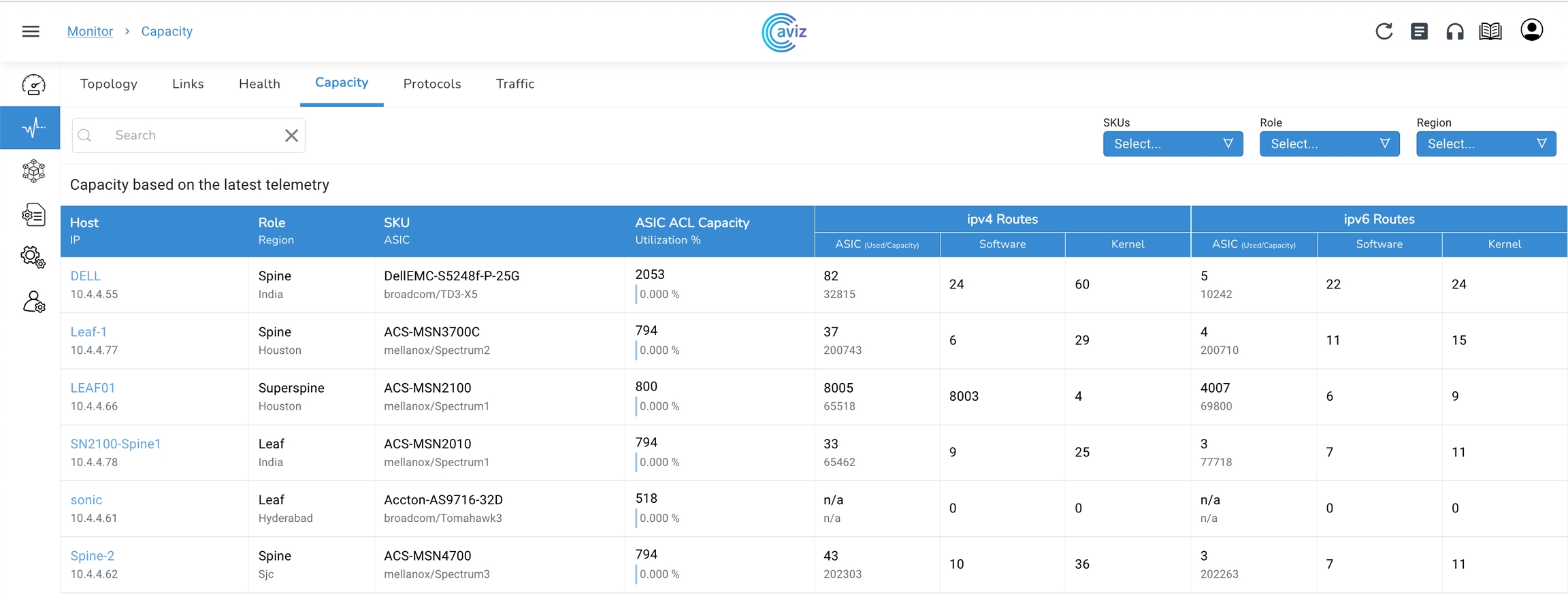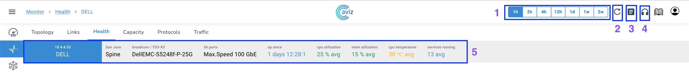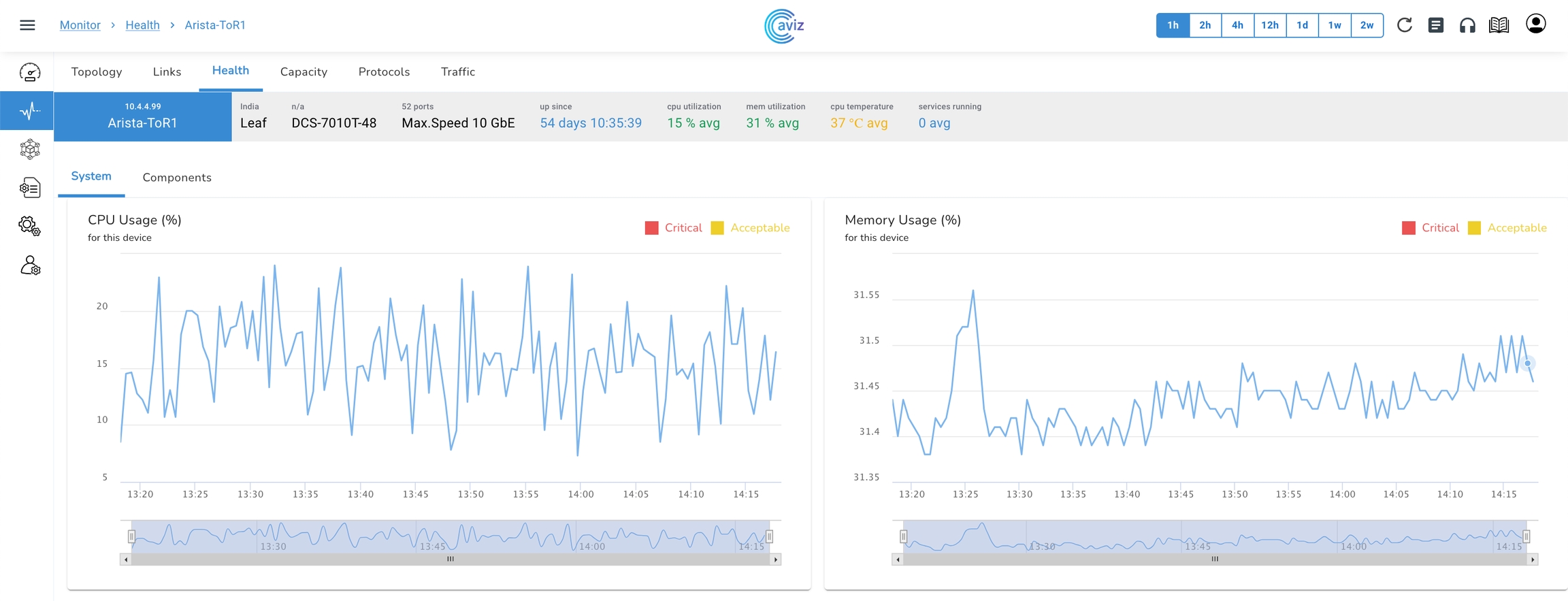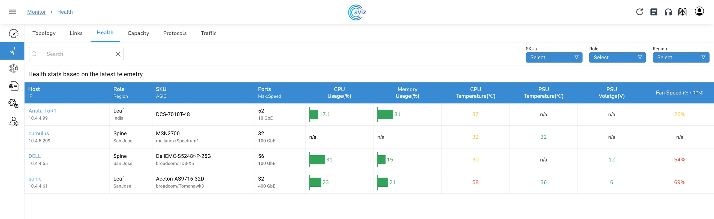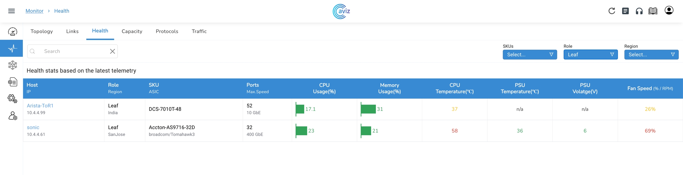 This page shows the latest utilization of the devices with CPU & Memory utilization, Temperature & Voltage of PSU, and fan speed in RPM