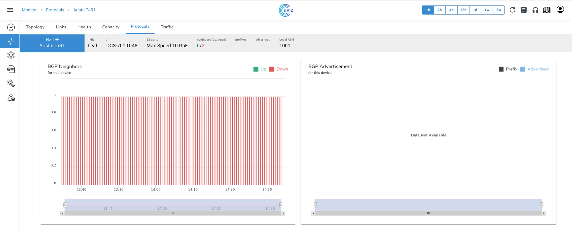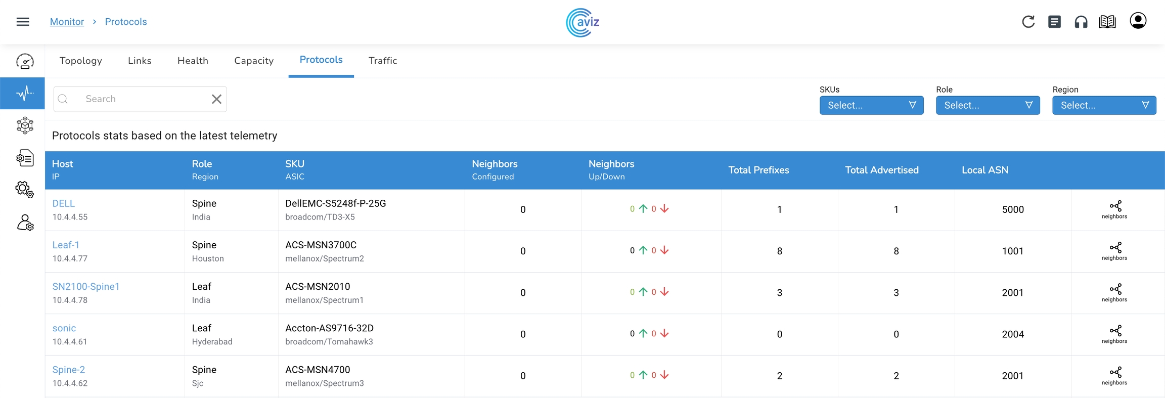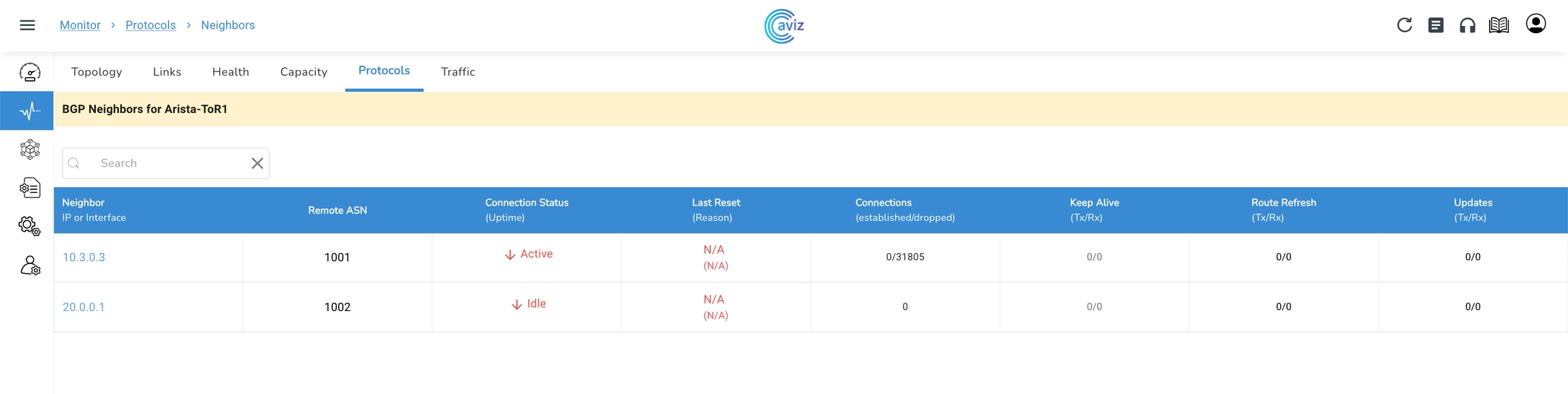 This Protocol Page shares the data of BGP neighbours present across managed devices