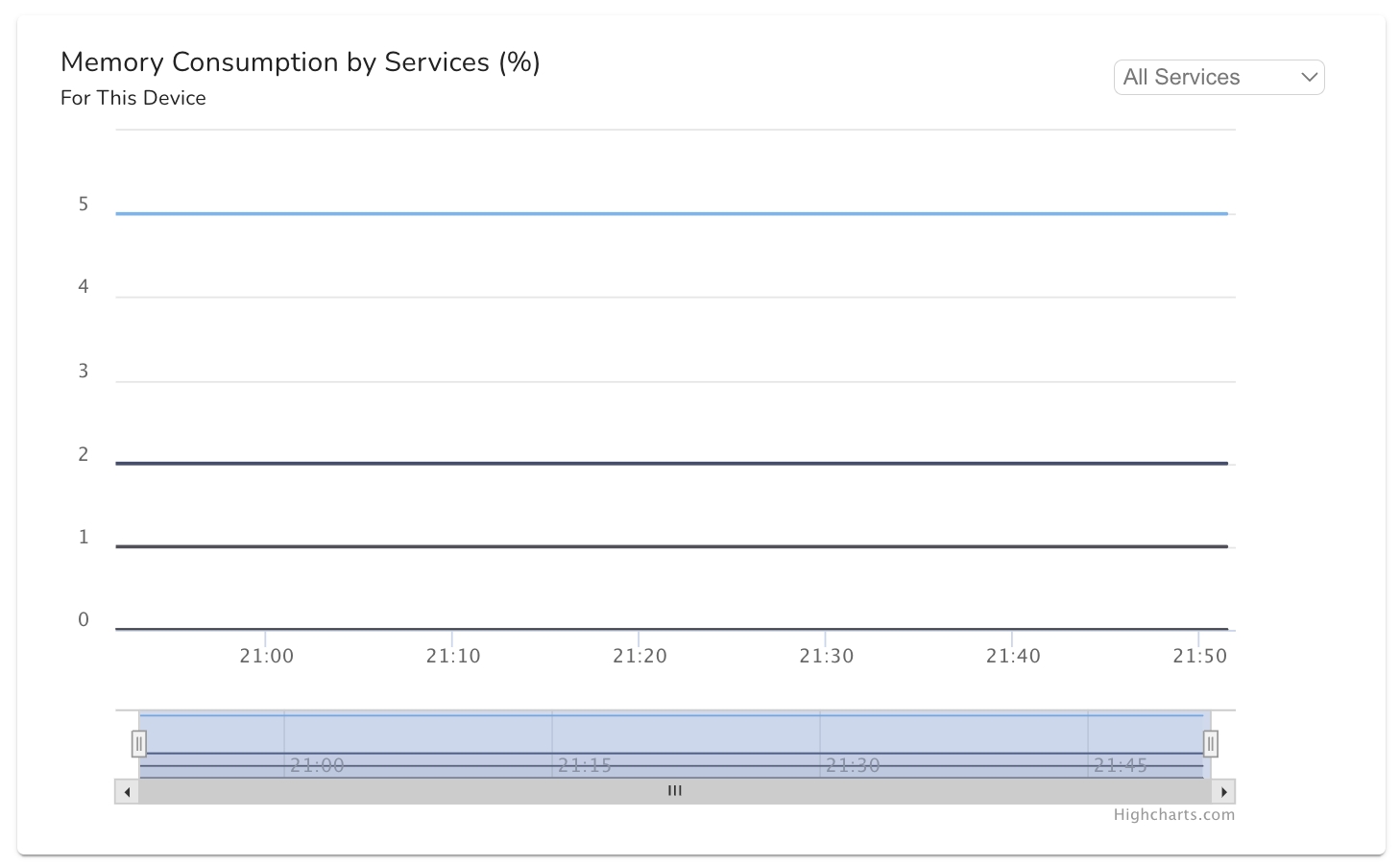 This widget shows us the Memory consumption percentage level of all services / per service.