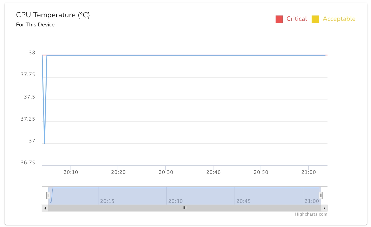 Details of the temperature of the CPU across all the devices in degrees celsius