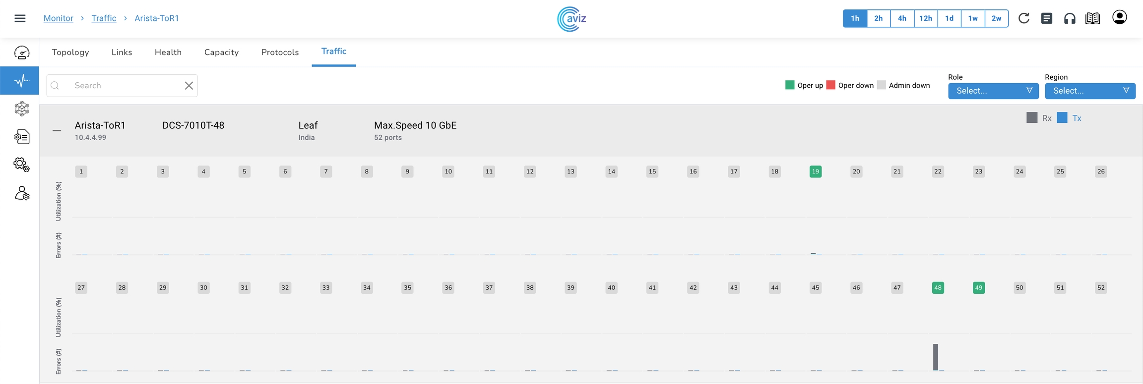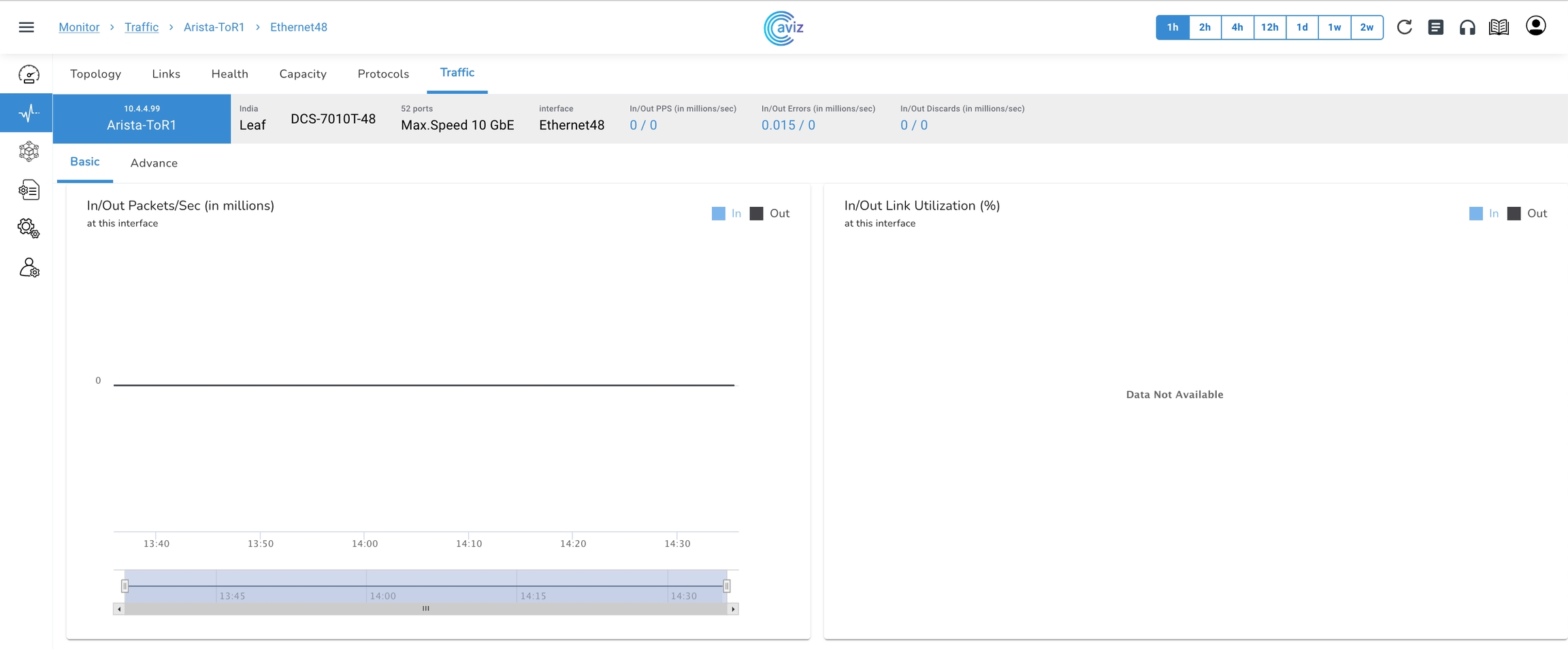 When we click on any particular interface it gives the timescale of the inputs and output packets with Errors and Discards & all metrics in detail