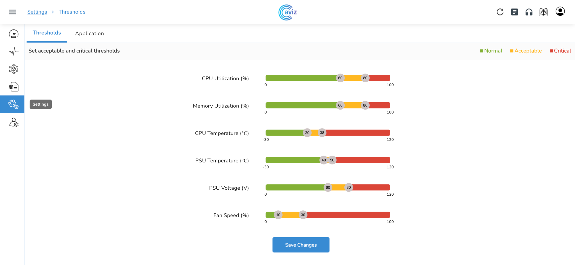 Using this feature setting we can set the acceptable and critical percentage level for the following device components
