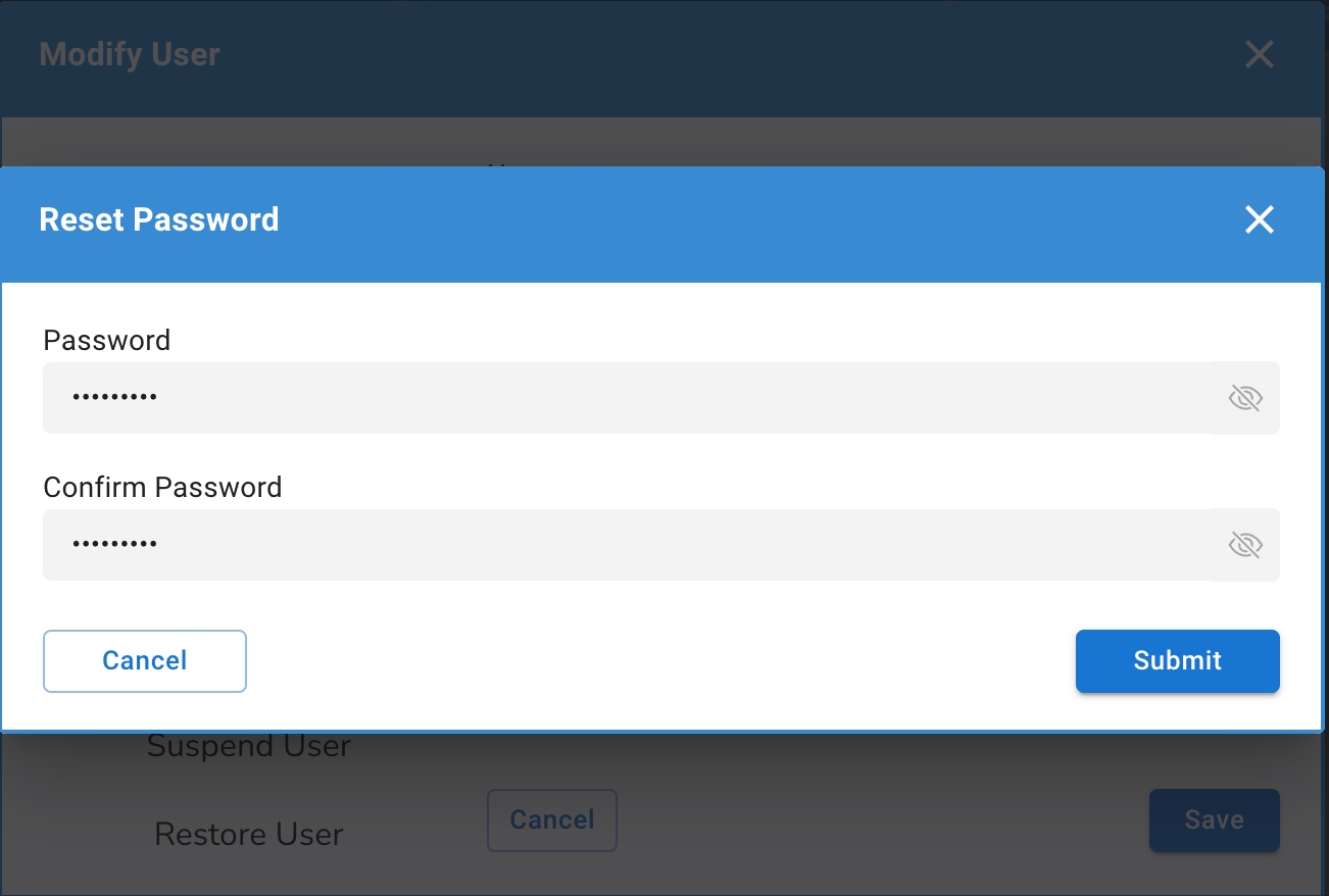 Navigate to Accounts >> Users >> Edit User >> Reset Password >> Yes