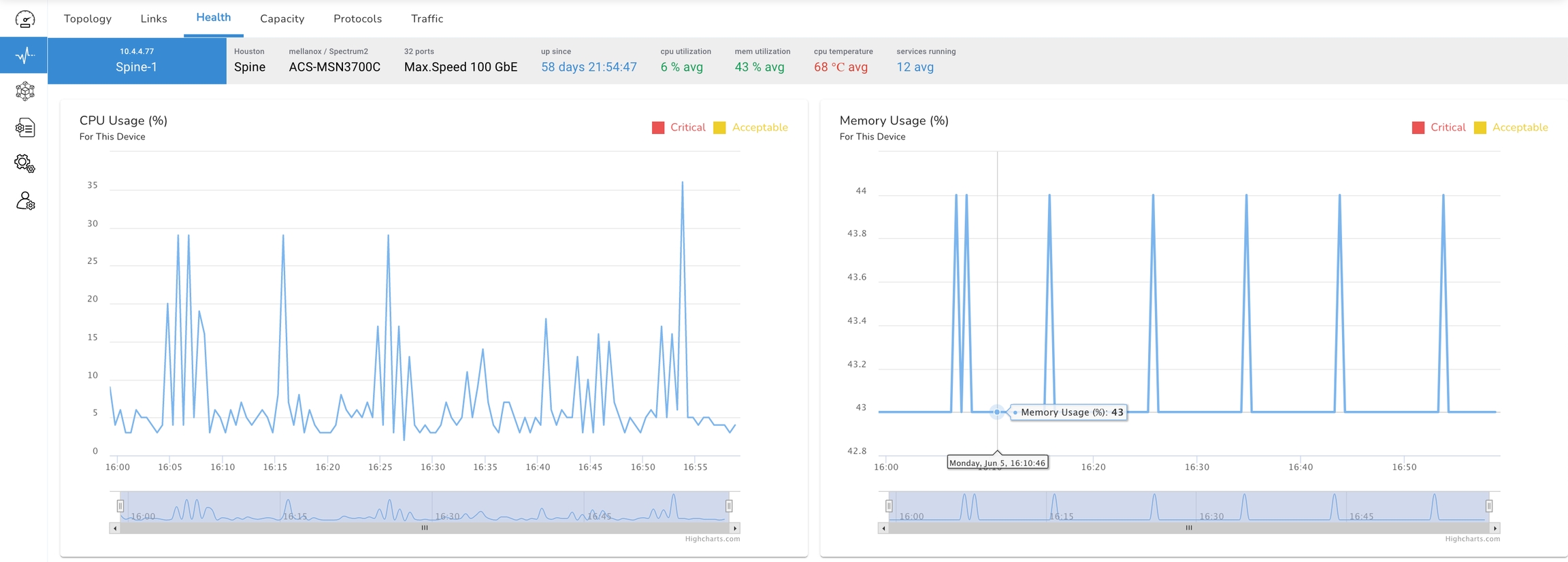 • Track Switch CPU/memory consumption, bandwidth, link failures, traffic errors, and more in real-time