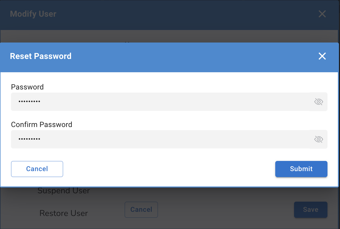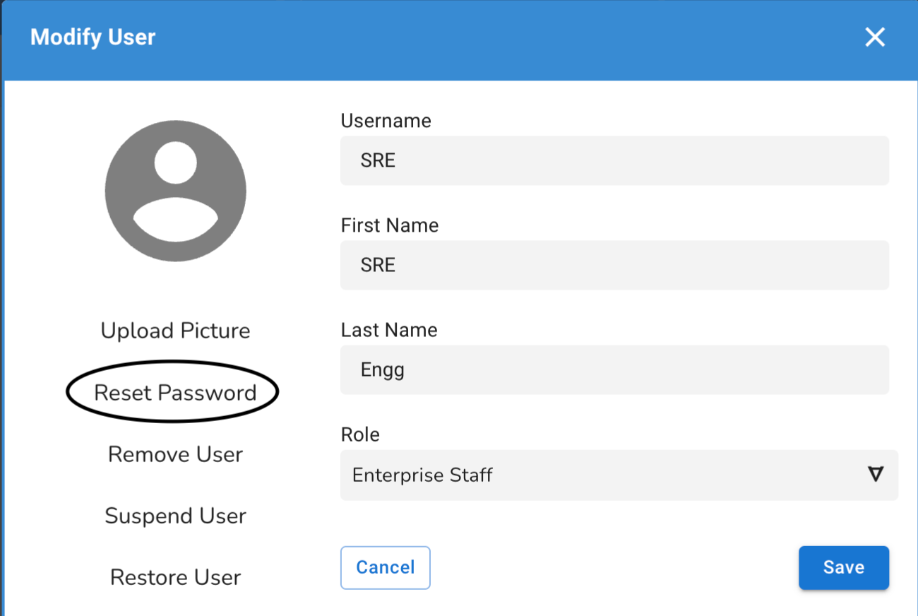 Users - Reset Password <Pending due to a bug>