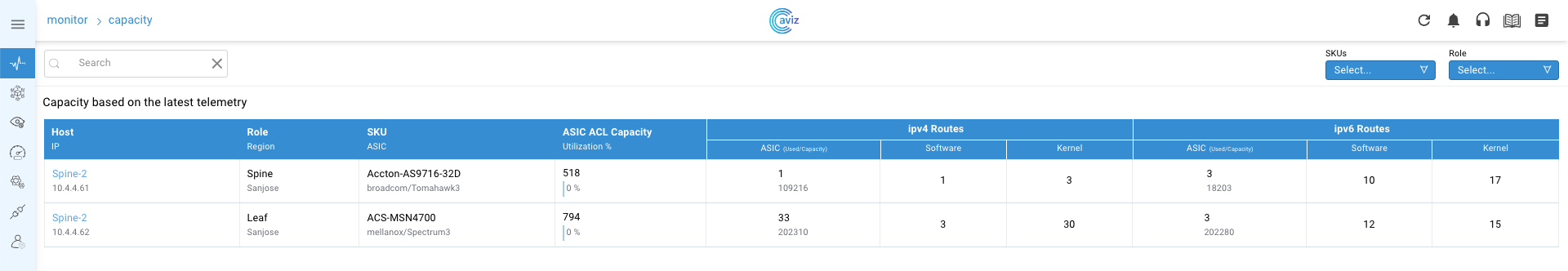 Using this page a user will be able to troubleshoot the protocol or any misbehaviour happening on the devices due to any capacity issue of routes