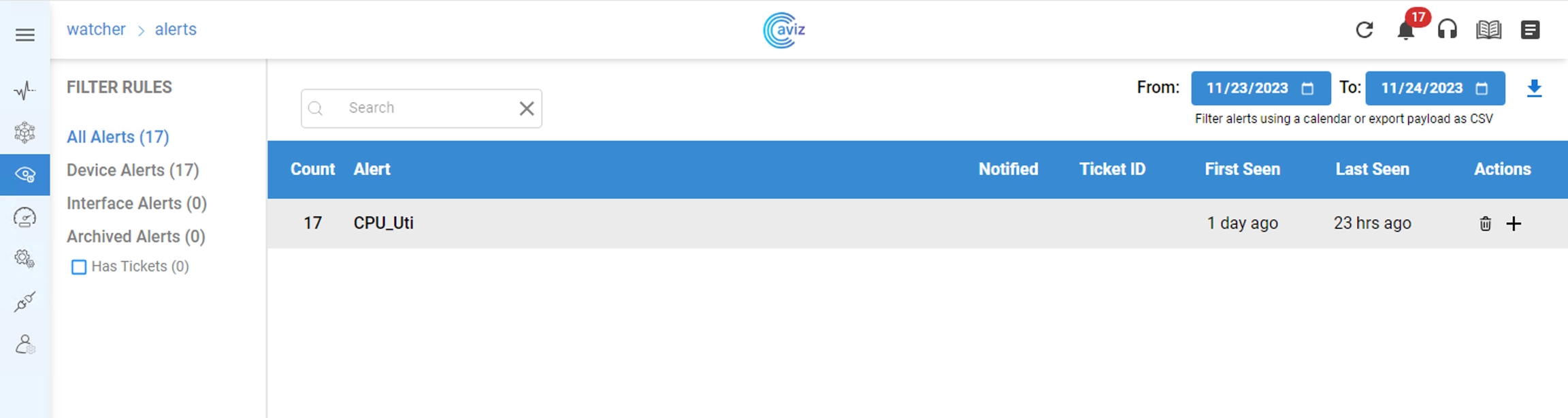 Once user create any Rule, and if threshold value breaches then it will generate Alerts and will show on this page too