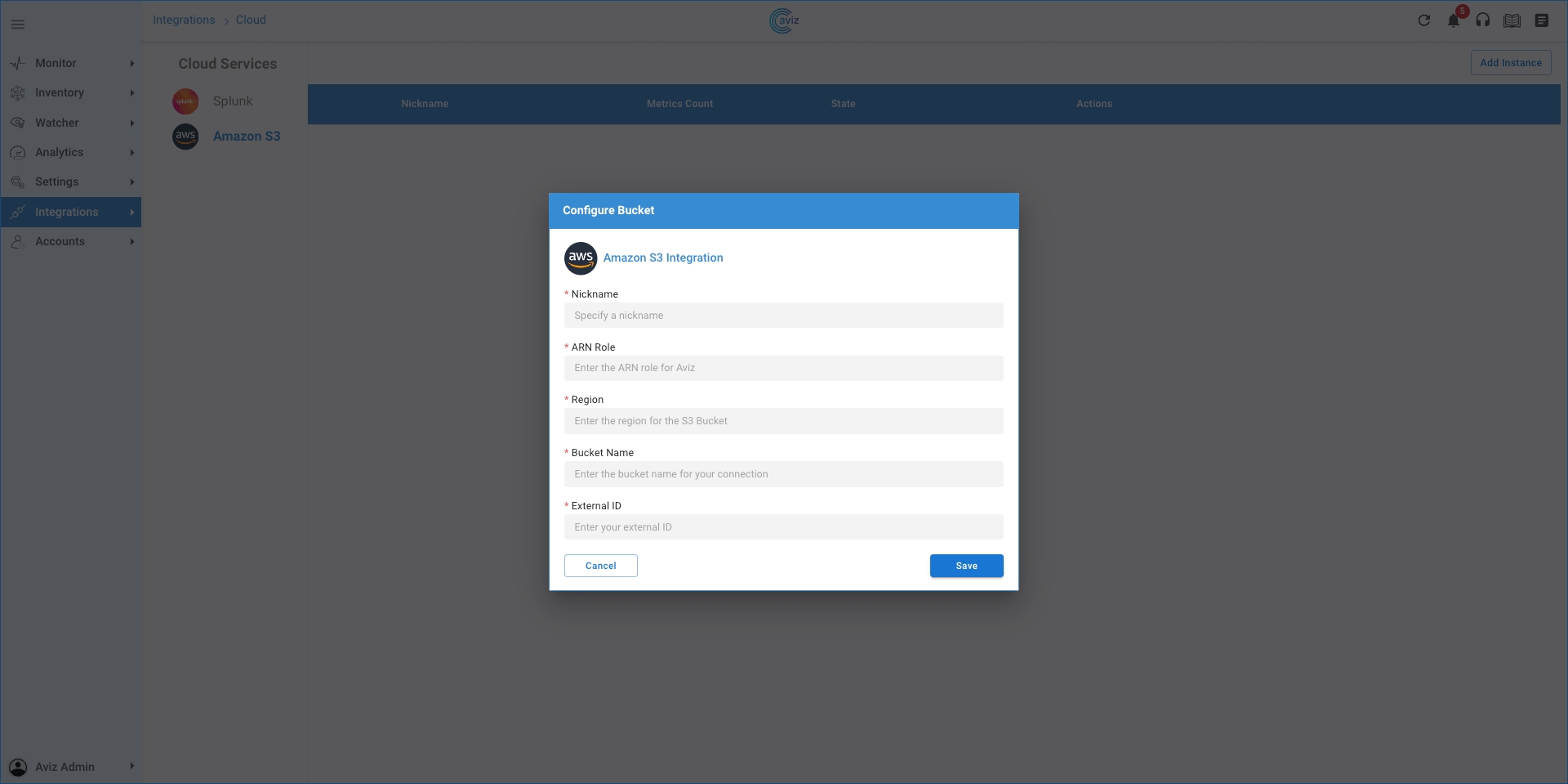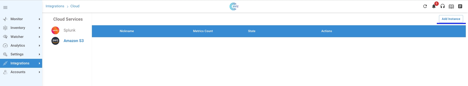 Navigate to Cloud Service >> Integrations >> Amazone S3