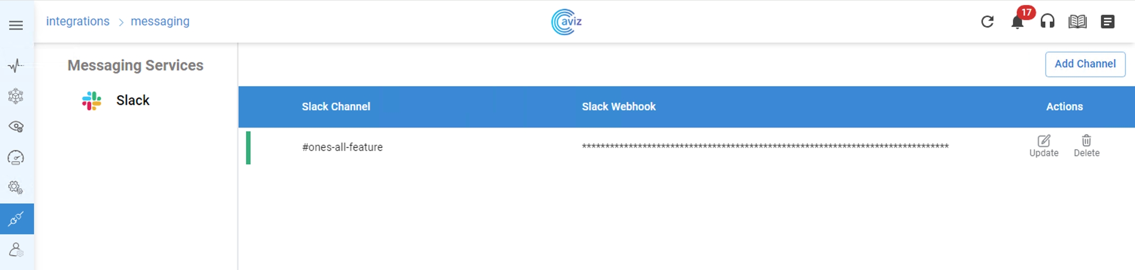 Add Channel & Paste the Webhook URL
