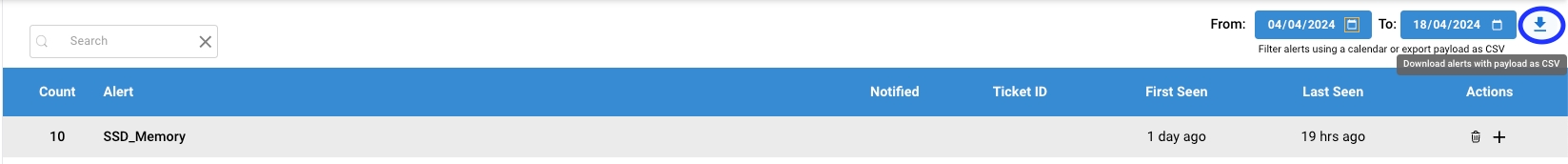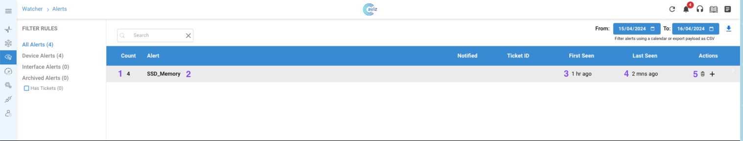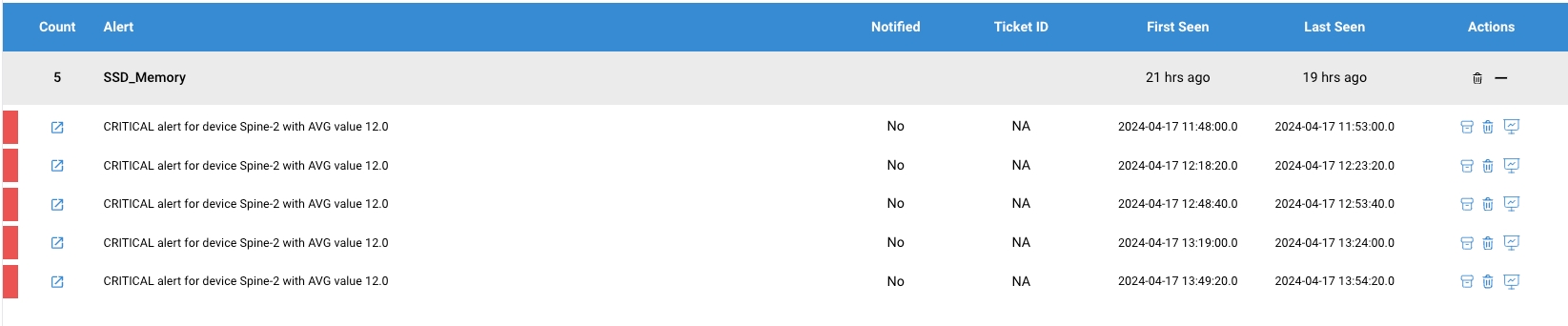 When a user creates a rule, and the threshold value is exceeded, alerts will be generated. These alerts will also be displayed on this page.