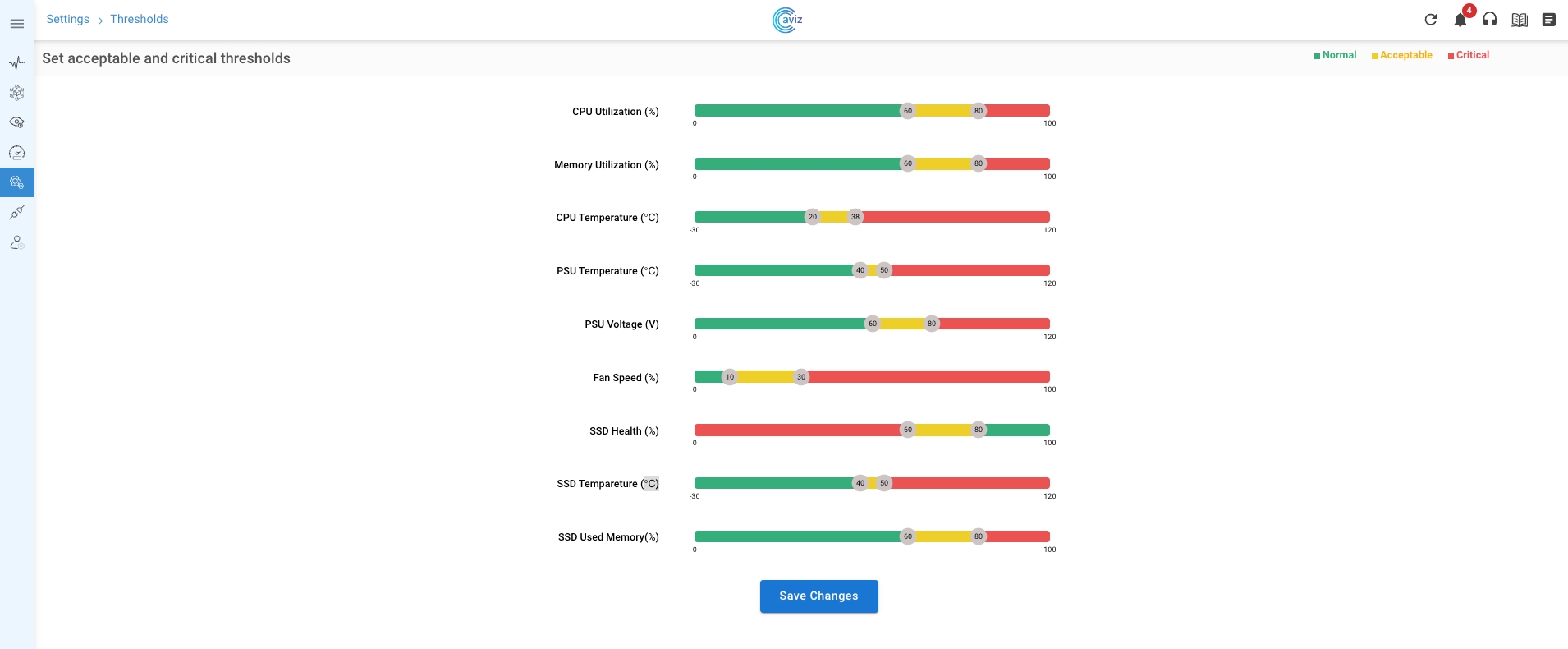 Using this feature setting we can set the acceptable and critical percentage level for the following device components