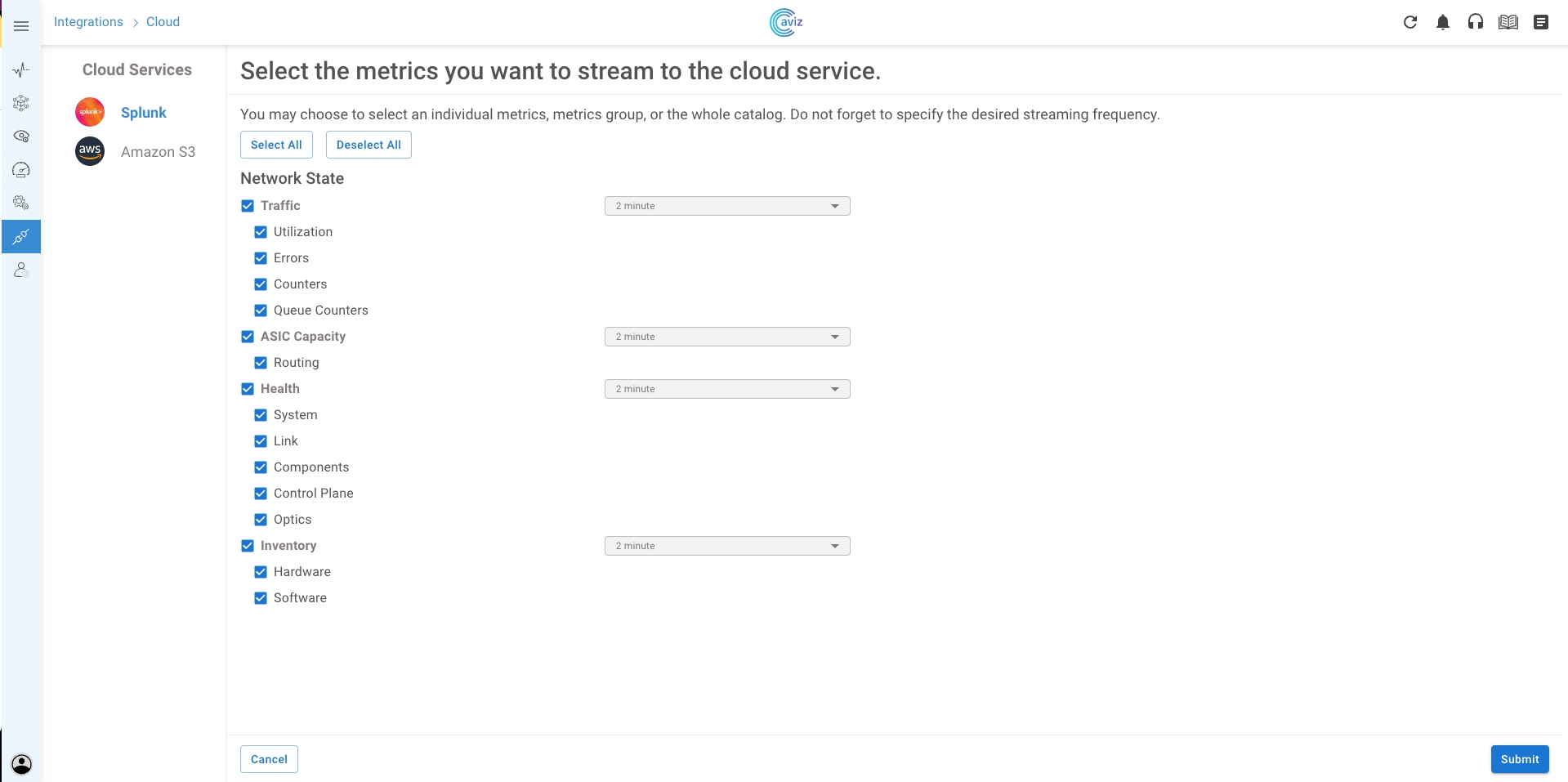 Using this option user will have control on metrics and the frequency of streaming the metrics to Splunk Instance