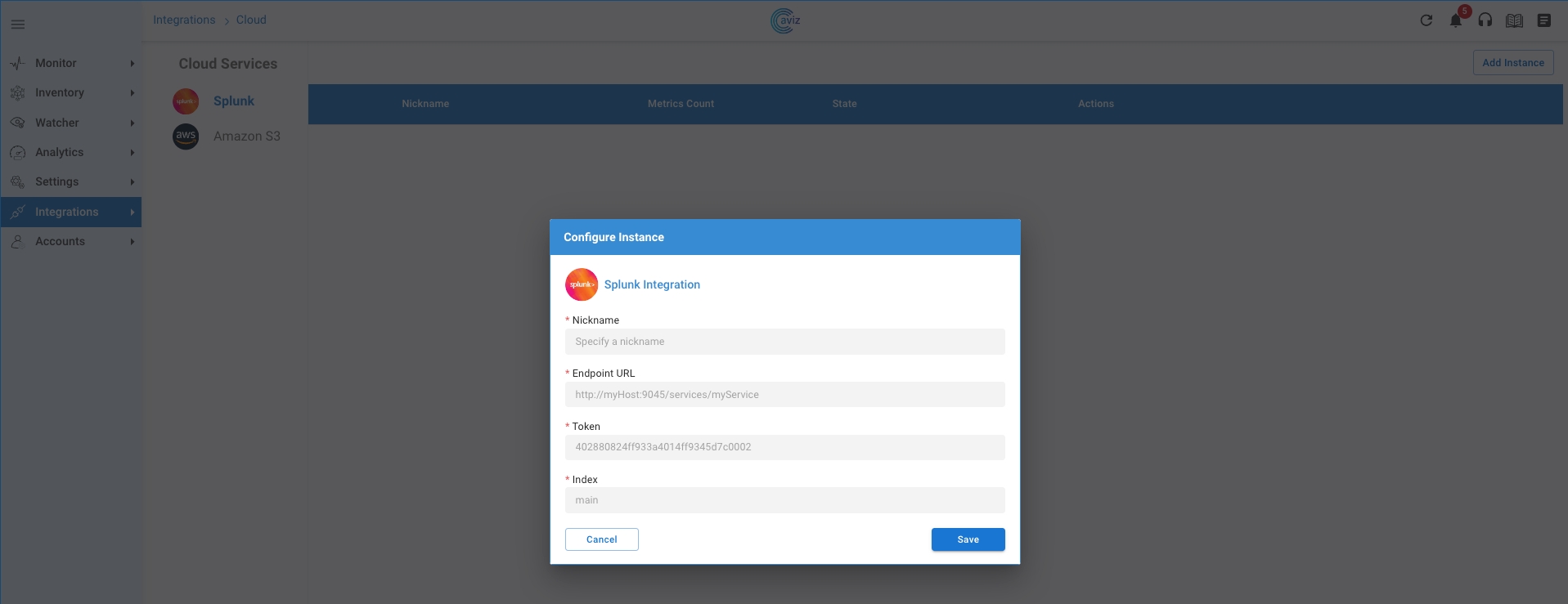 After saving the details it will be available to push the metrics to the Splunk Instance