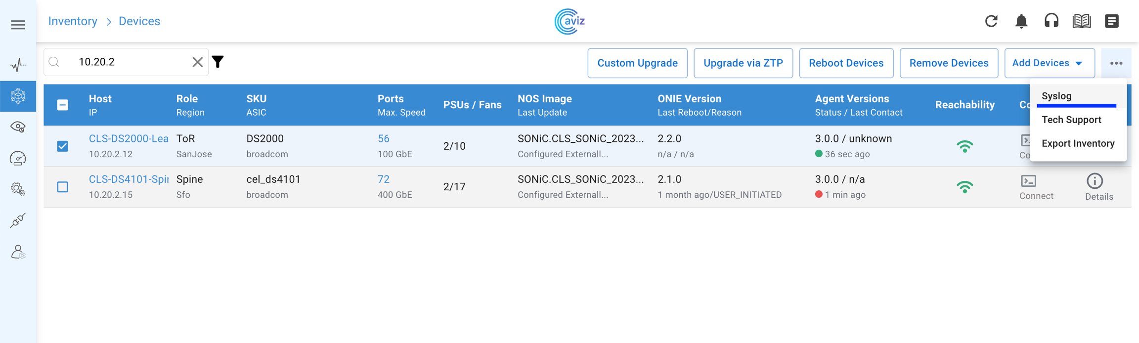Navigate to Inventory >> Devices
