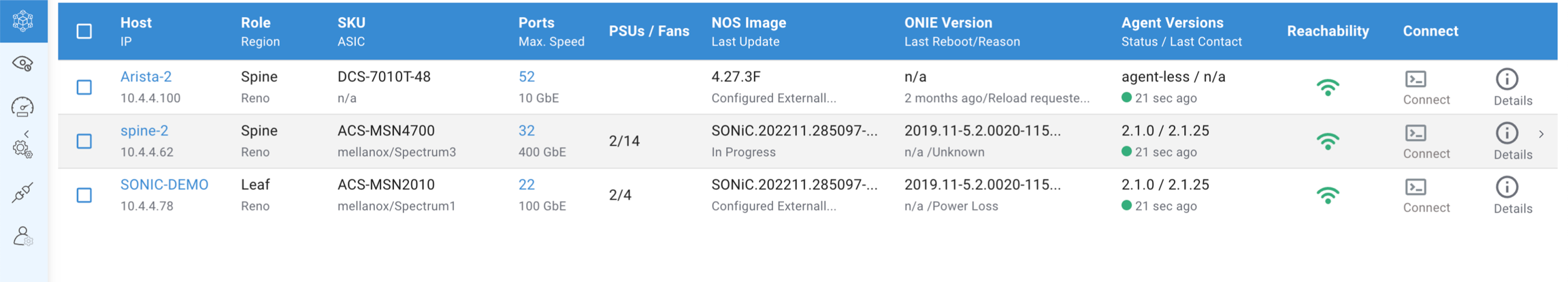 Once the device comes up with the new image, the ONES application will install Telemetry and Fabric manager agent
