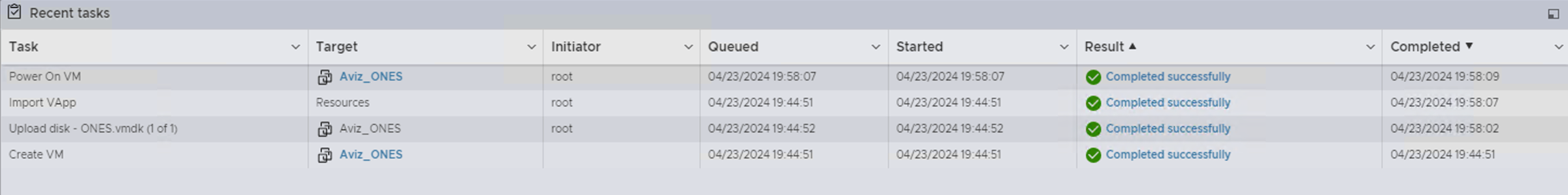 After the OVA upload to ESXi is complete and the status indicates "Successful," the user will then be able to use ONESVM.