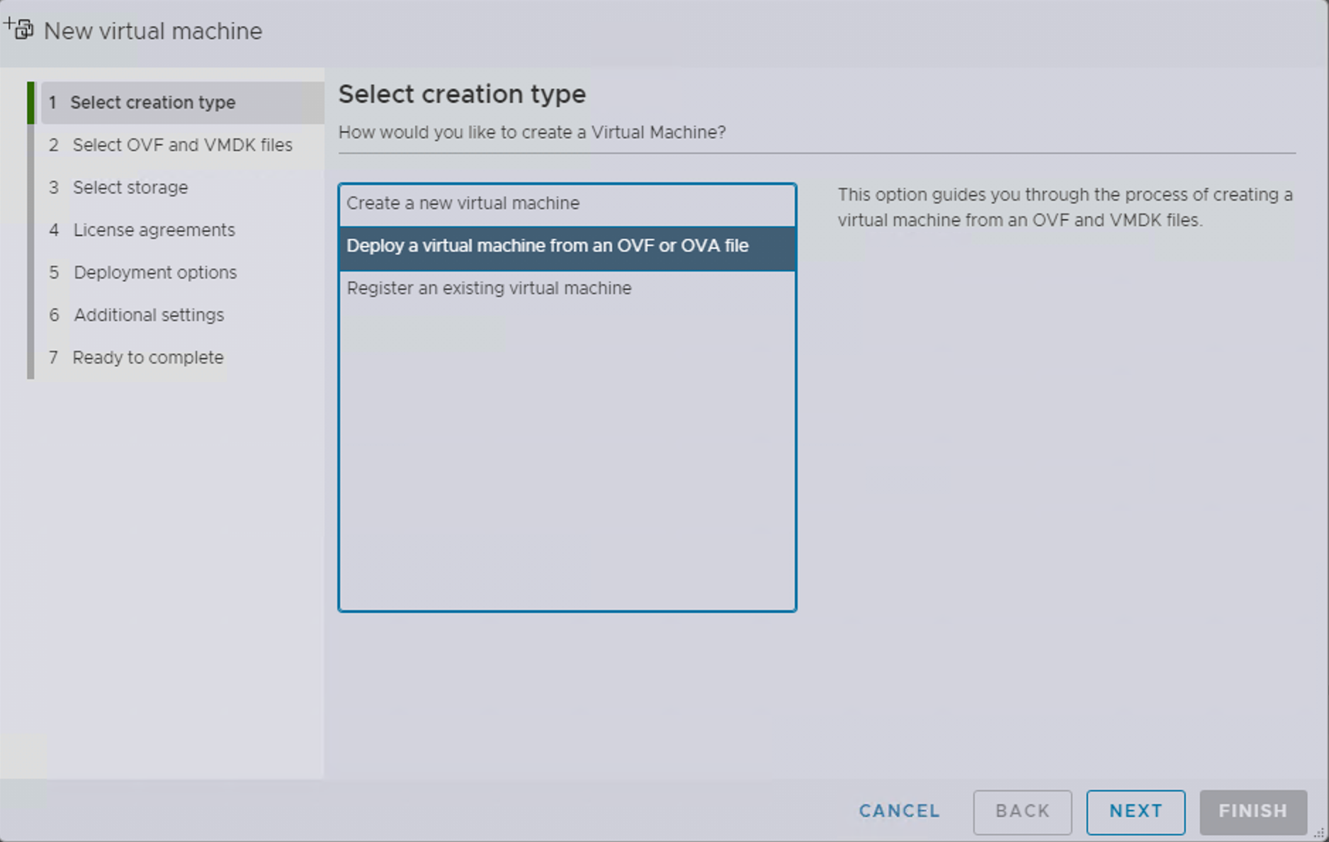 Choose Deploy a virtual machine from an OVF or OVA file >> NEXT